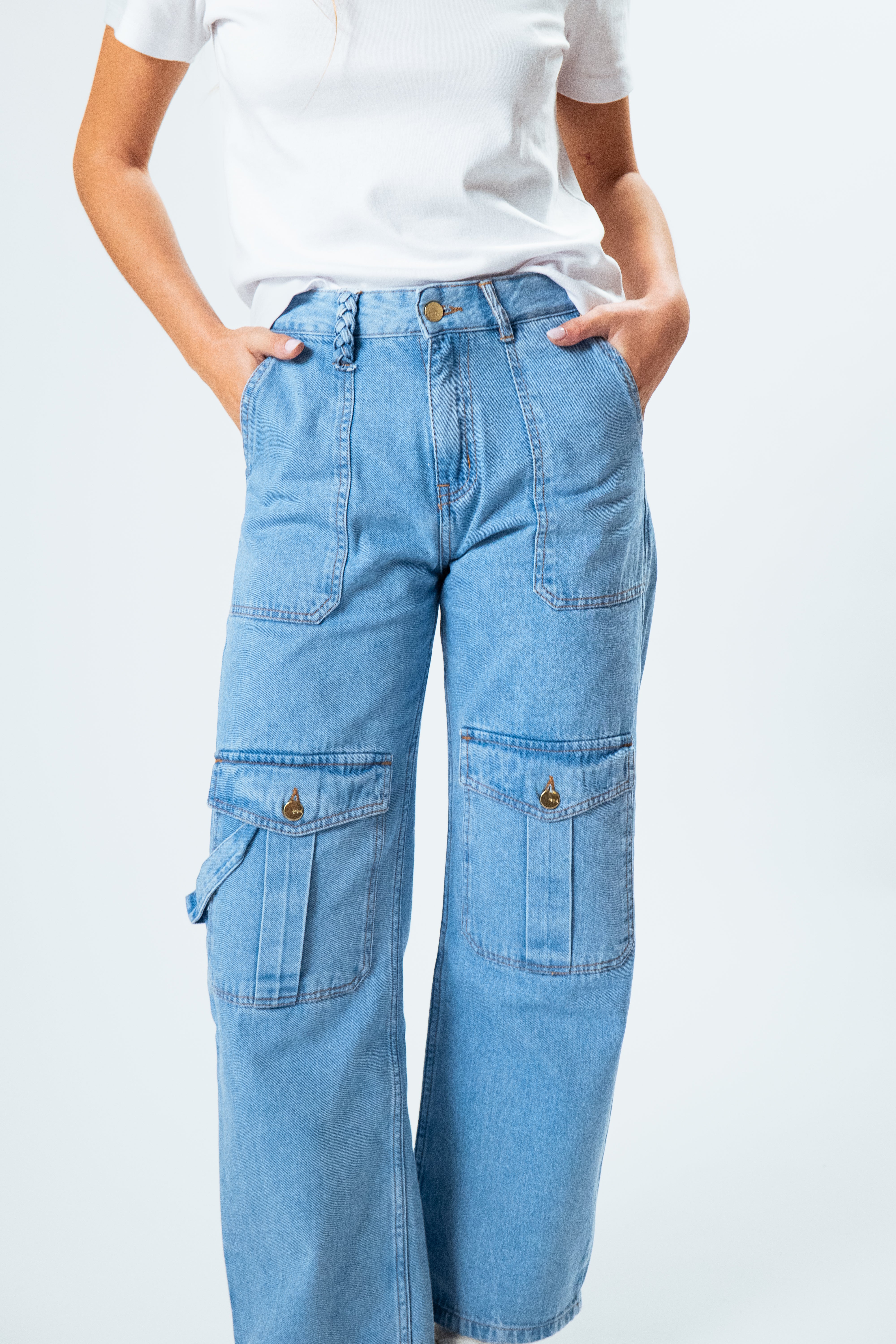Estos balloon jeans están desarrollados 100% en algodón, lo que les proporciona una textura suave y cómoda. Los bolsillos, ubicados estratégicamente en la parte delantera a la altura de las rodillas, añaden un toque único y funcional, brindando un look audaz y deportivo.