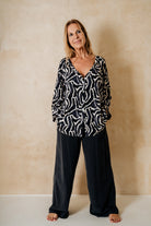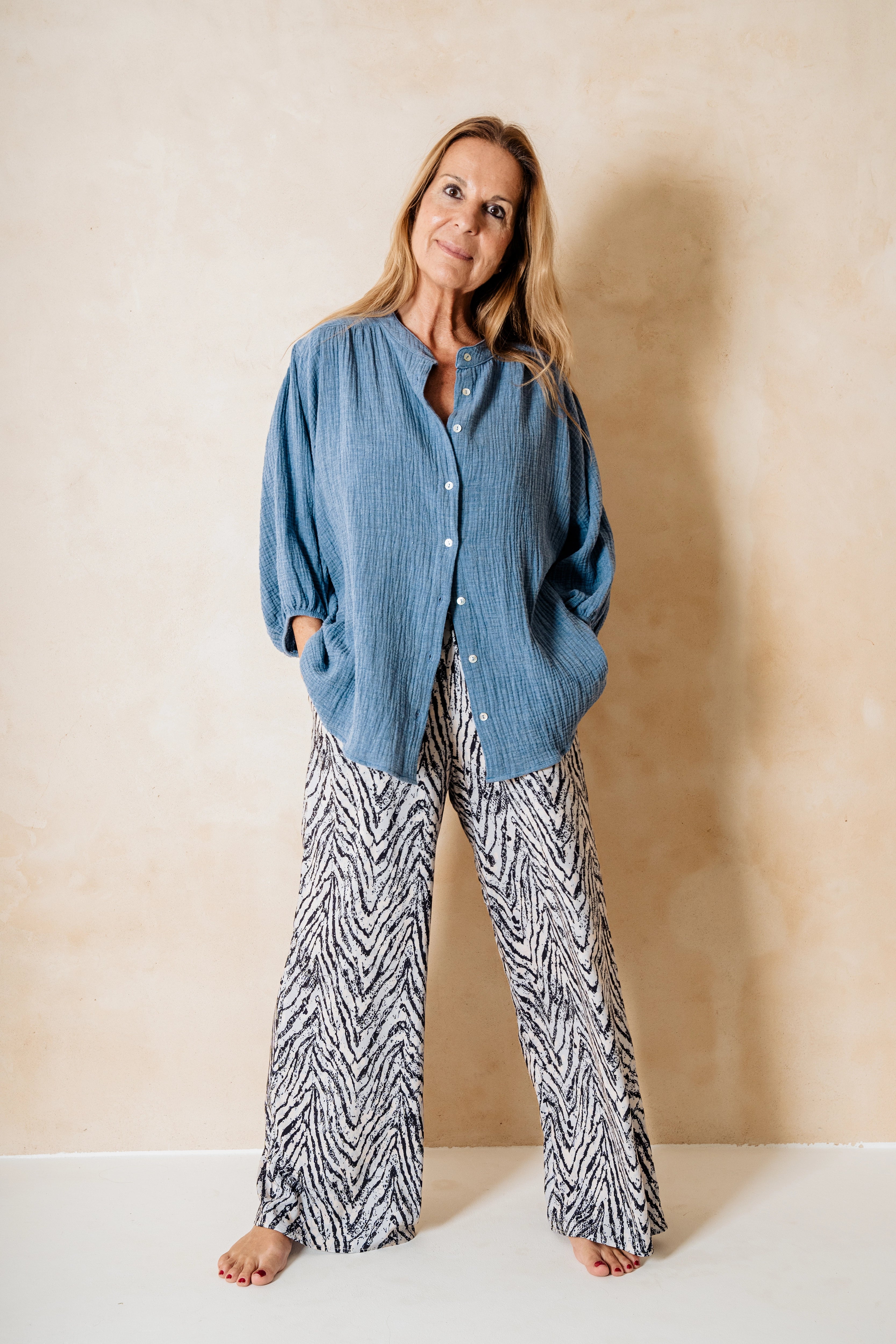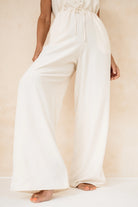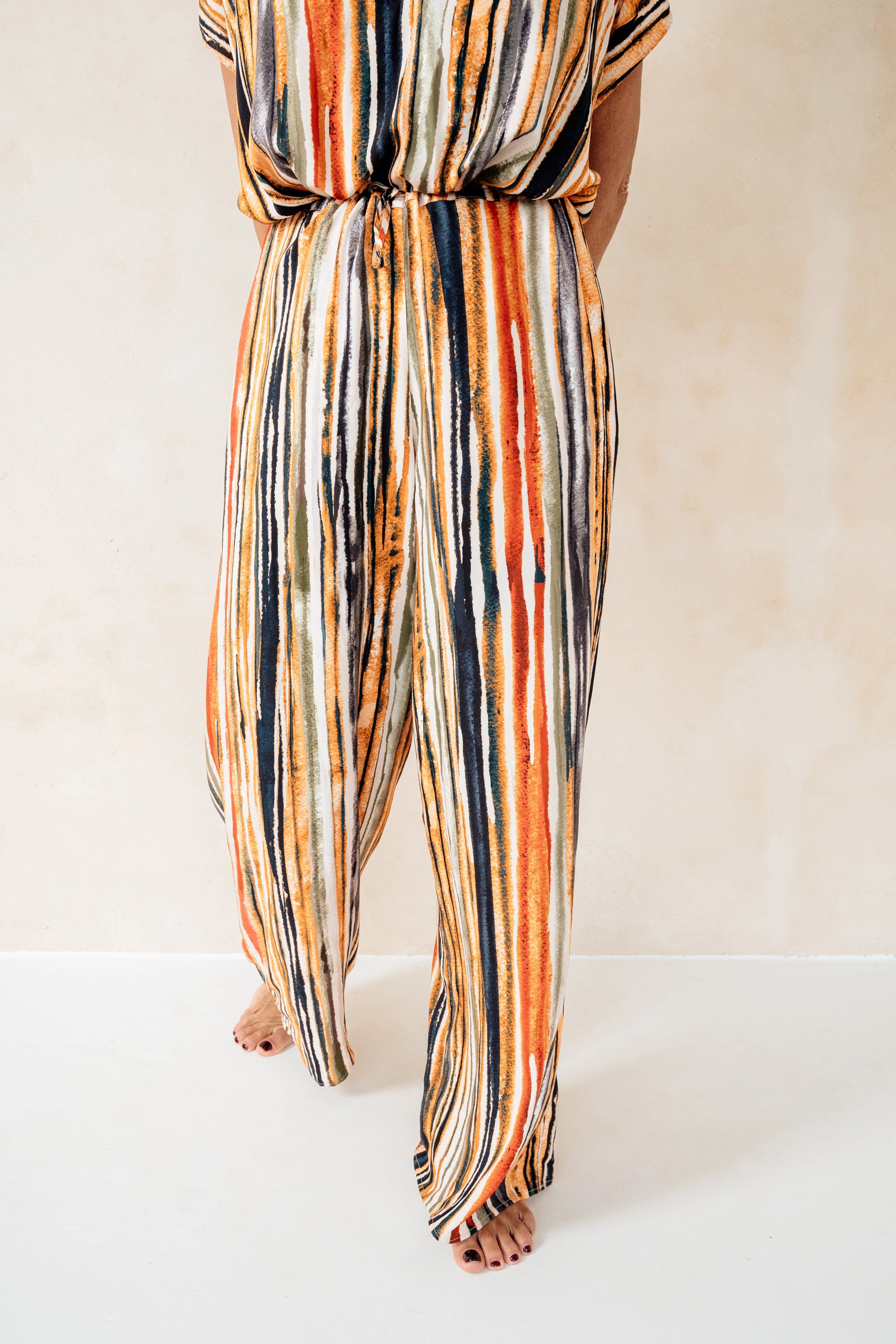 Pantalón estiloso de pernera ancha con cintura elástica trasera, cordón ajustable y bolsillos laterales Materiales: 100% en Viscosa EcoVero. Esta viscosa deriva de la pulpa de la madera de los árboles y es biodegradable. Su producción y la cadena de suministro es transparente y cumple altos estándares medioambientales. Cuenta con Certificado OEKO-TEX.