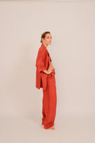 Este pantalón es todo lo que necesitamos en nuestro armario. Está hecho con un exquisito lino suave, ligero y tiene un diseño recto con caída fluida, tiro medio. El equilibrio perfecto entre comodidad y estilismo. Puedes complementarlo con camisas, tops de color basico o en complemento con su blazer.
