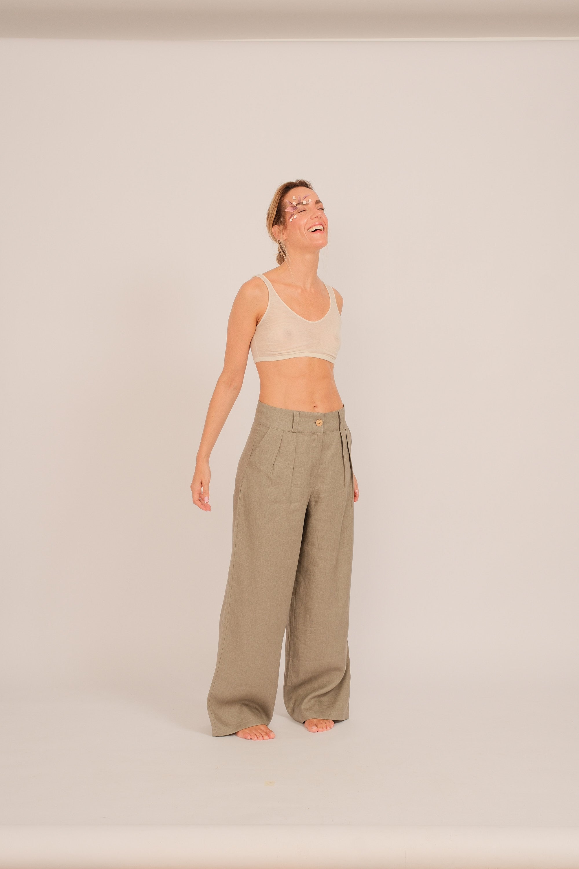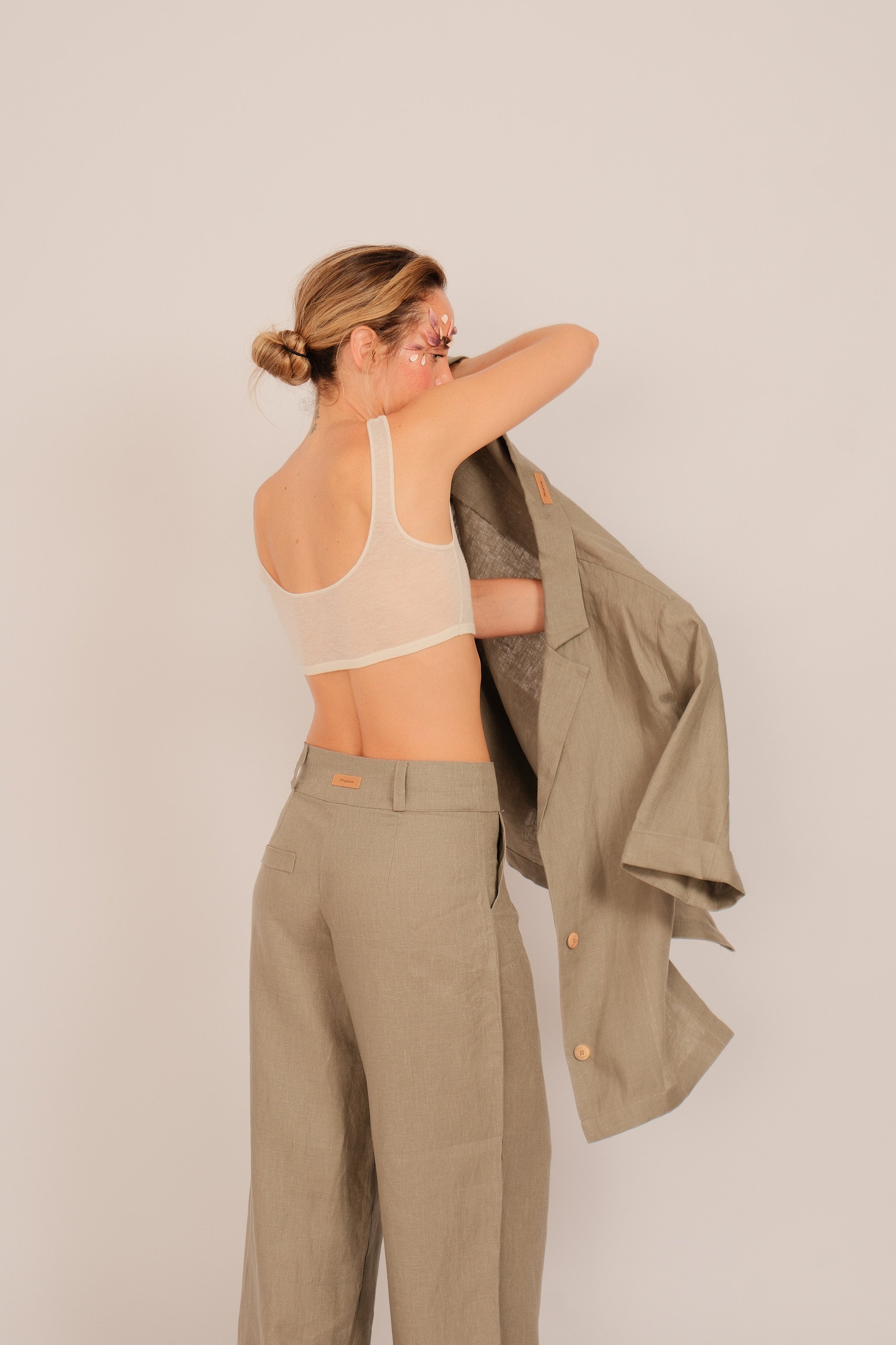 ste pantalón es todo lo que necesitamos en nuestro armario. Está hecho con un exquisito lino suave, ligero y tiene un diseño recto con caída fluida, tiro medio. El equilibrio perfecto entre comodidad y estilismo. Puedes complementarlo con camisas, tops de color básico o en complemento con su blazer.