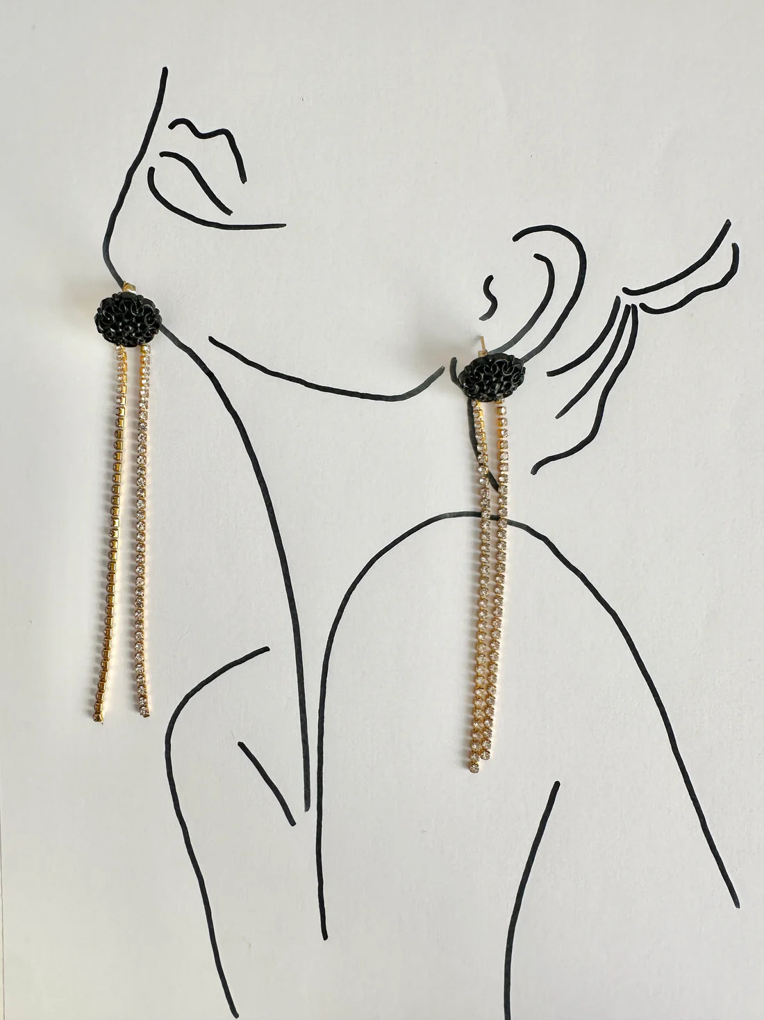 Pendientes con piedra negra barroca y cadenas de circonitas