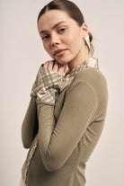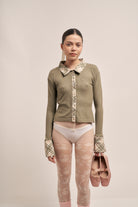 Polo de algodón 100% con silueta al cuerpo. Cuello, puños y cartera de botones confeccionados en estampa exclusiva. Botones tornasol que cambian según la luz. Una reinterpretación del uniforme clásico, con carácter y diseño propio.