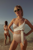 Bañador realizado con dos tonos, y un lazo en la zona top, que se cruza hacia el delantero, dejando algunas partes descubiertas del torso. *Lycra Premium