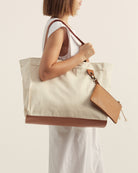 Acceso con cierre y cordón. Tiene un sistema de gancho especial para que puedas utilizarlo junto con tu tote bag Urraca.