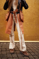Confeccionados en cuero de alta calidad, los Spider Pants proporcionan una sensación suave y duradera. El cuero es flexible, lo que asegura comodidad y libertad de movimiento, mientras que las costuras a mano refuerzan su resistencia y aportan un detalle exclusivo que hace destacar el diseño.
