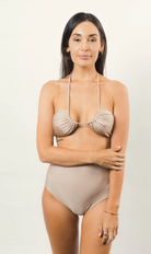 El Top Brunella es un bikini top con un escote en U que puedes ajustar cómodamente al cuello. Su diseño innovador te permite 3 formas de uso para adaptarse a tu estilo y comodidad: