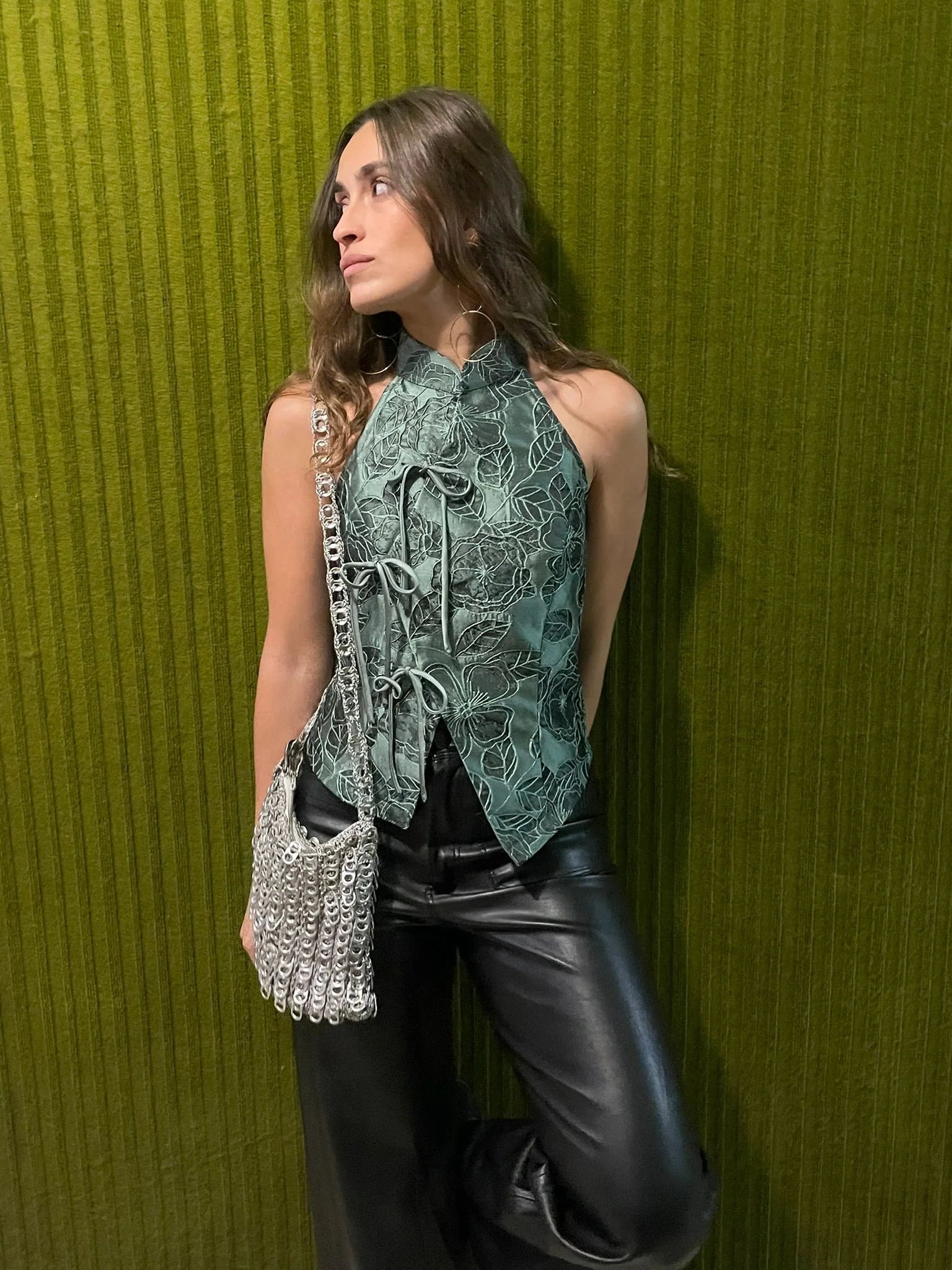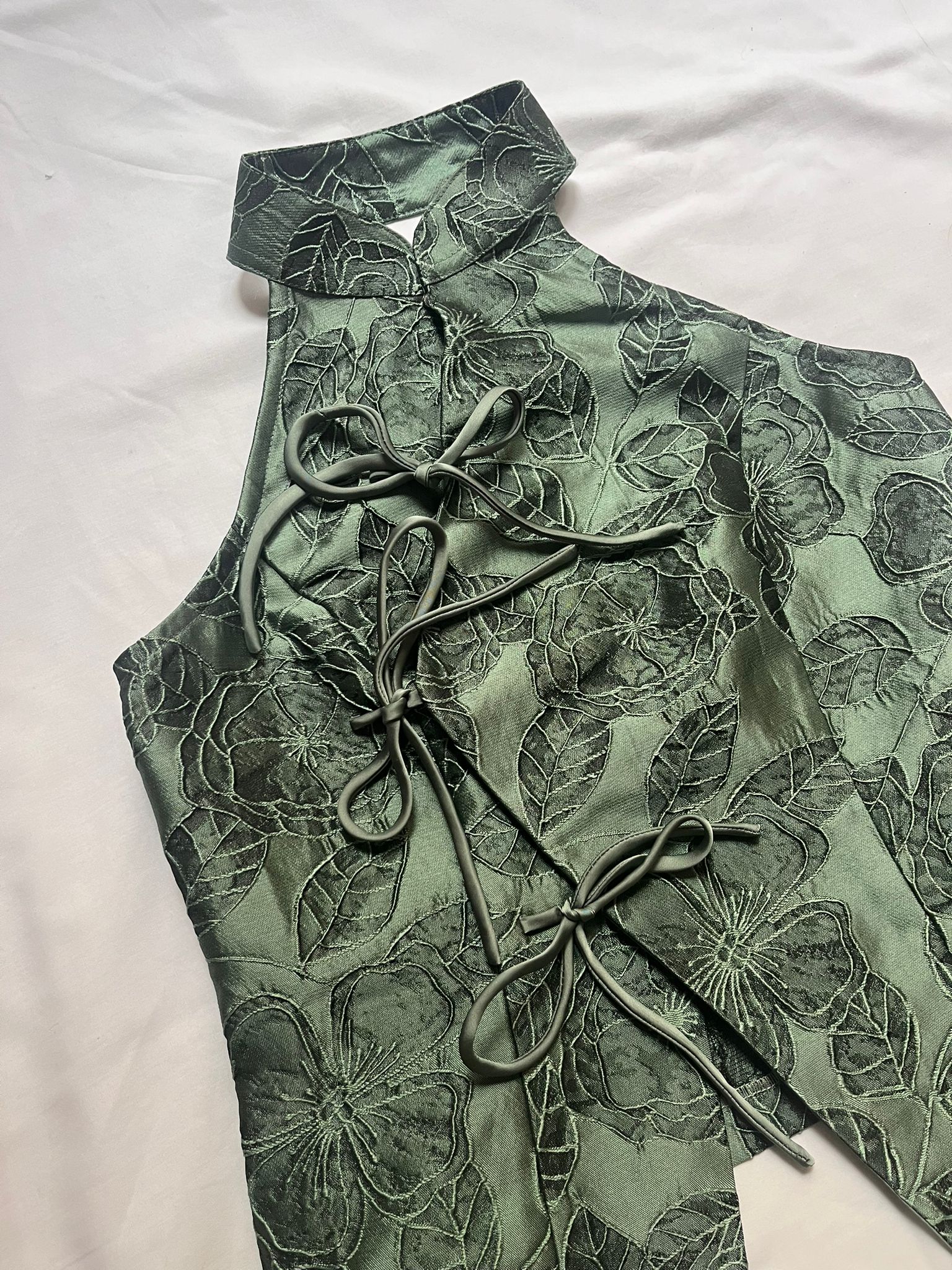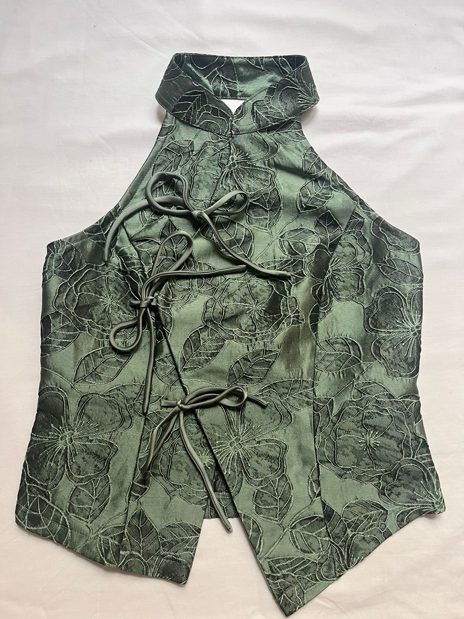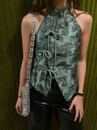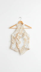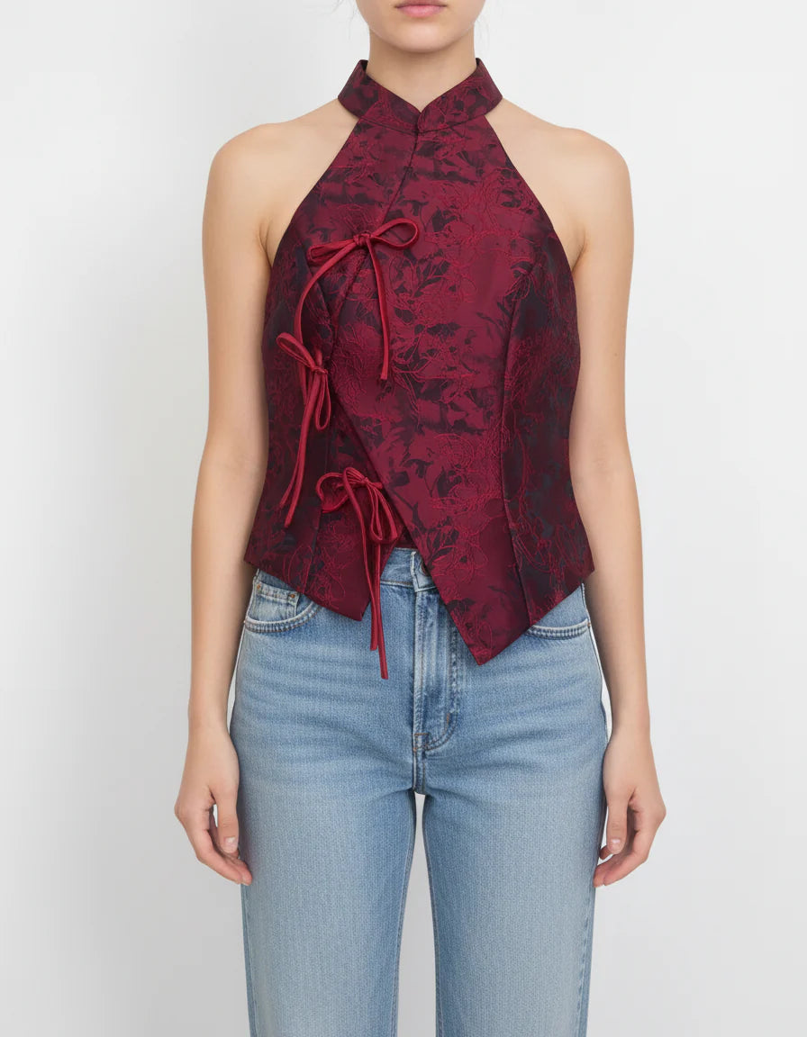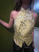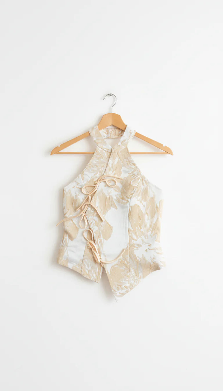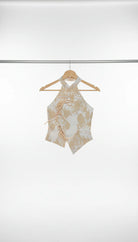 Top halter con influencia japonesa de flores.