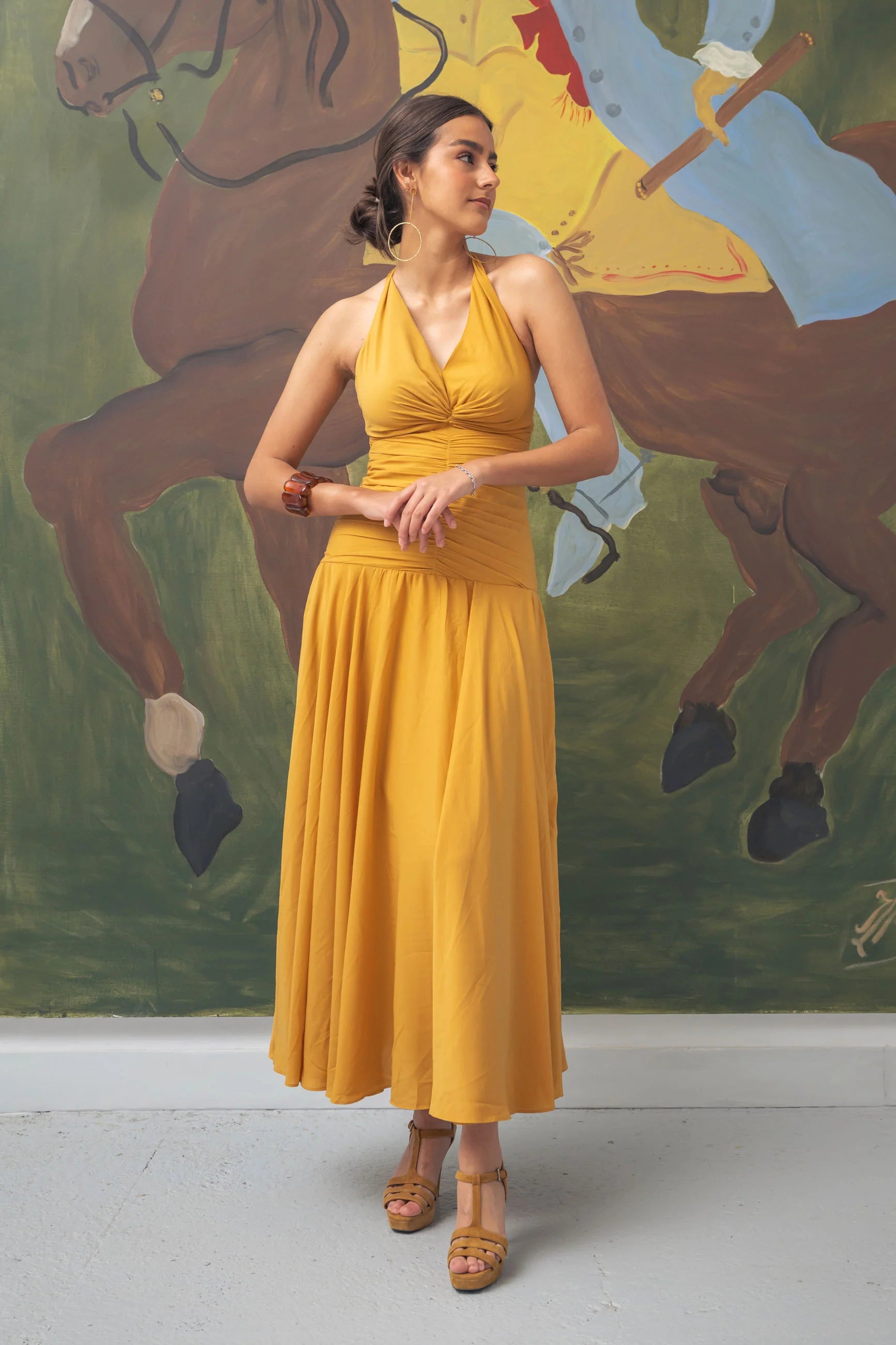 VESTIDO FRUNCIDO ISLOTE AMARILLO