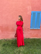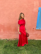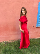 Confeccionado en una seda ligera y fluida, este vestido rojo desprende sensualidad y carácter. Su corte asimétrico aporta dinamismo y un aire contemporáneo, mientras que la caída natural de la tela envuelve la figura con sutileza, realzando cada paso.