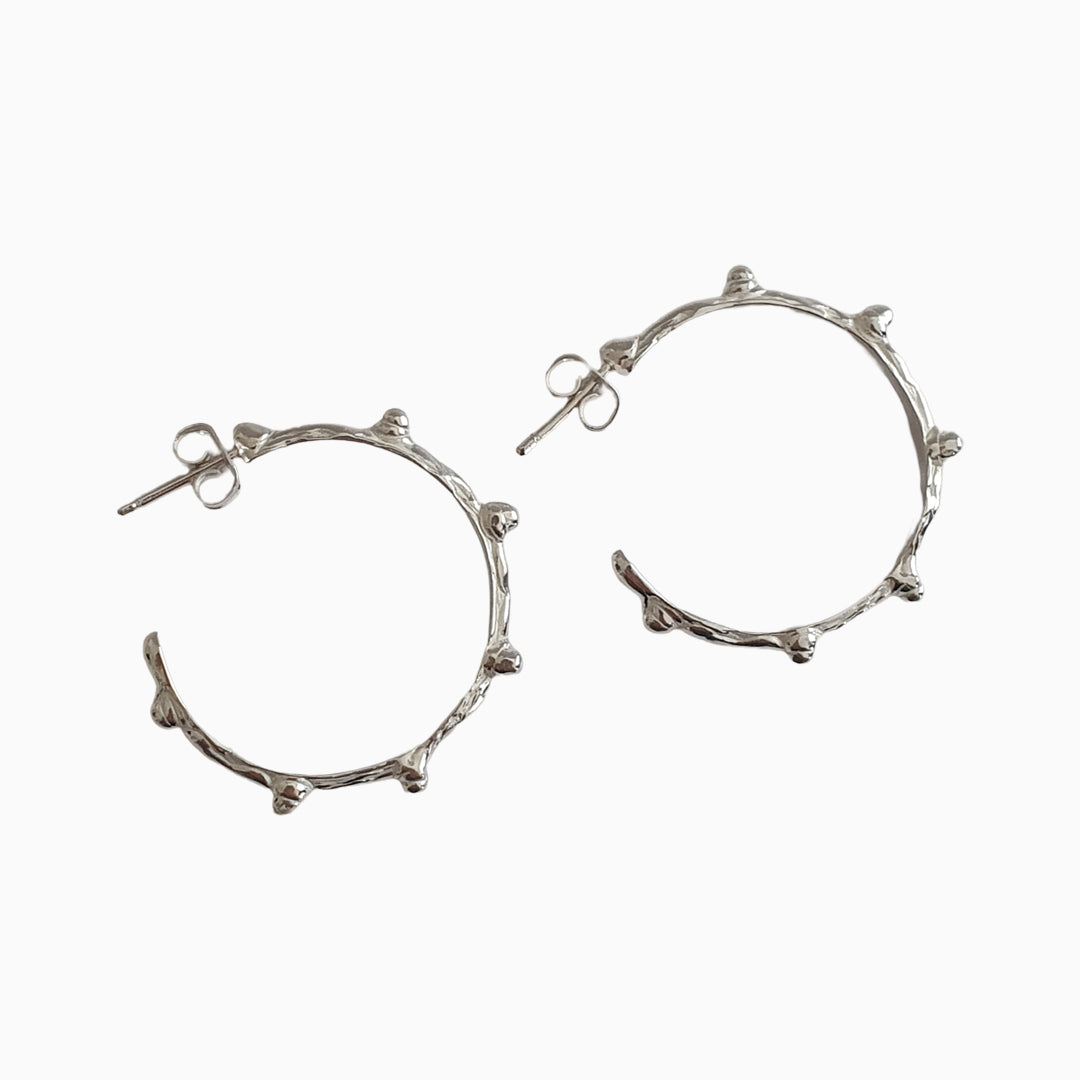 Los pendientes Timón capturan la esencia del timón, un símbolo de guía y navegación. Estos delicados aros, con sus curvas orgánicas, evocan la rueda del barco y su papel en trazar el rumbo. Cada pieza está elaborada a mano en plata de ley 925 e incluye piedras naturales semipreciosas. No hay dos piezas iguales, lo que hace que cada una sea verdaderamente única.