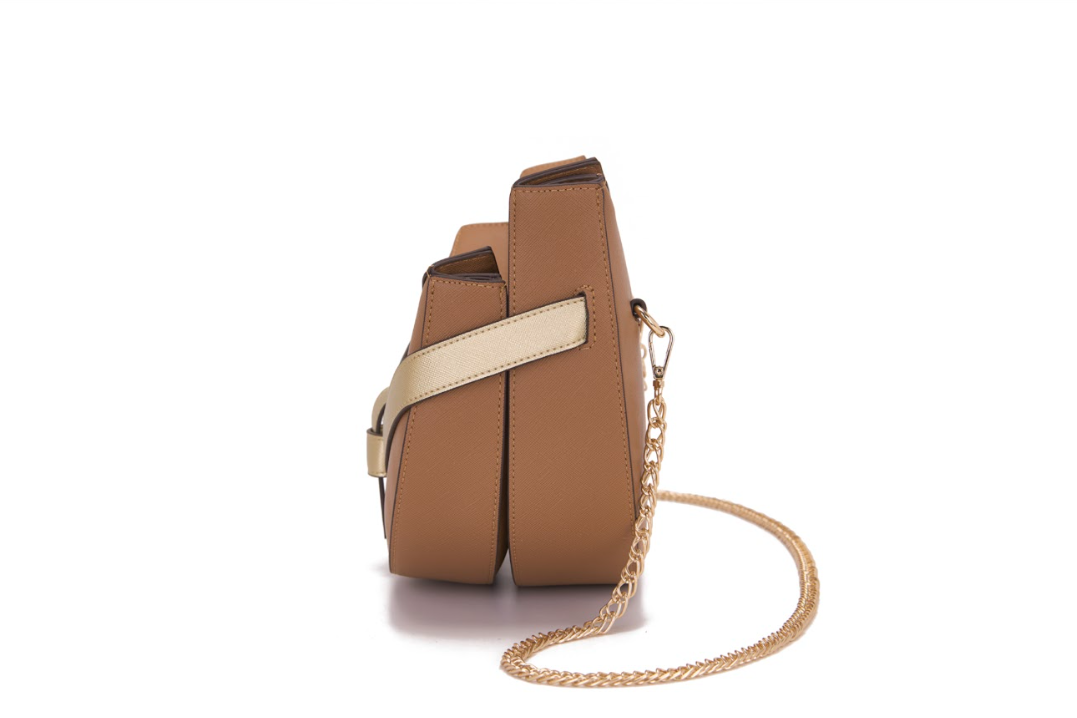 Nuestro diseño CRESCENTE, confeccionado con material ECO SAFFIANO, su ideal tamaño ofrece espacio interno para lo esencial. 2 compartimentos te permitirán organizar mejor tu contenido. Su ligero peso, lo convierte en un bolso de diario. Este bolso bandolera es la síntesis perfecta entre diseño compacto y funcionalidad innovadora, convirtiendo el acto de abrir y cerrar el bolso en un gesto elegante. Bolsillo interior con cremallera + bolsillo tarjeta. Bandolera diseño logo MR regulable y extraíble. Cierre solapa/ magnéticos. Forro interior MR. Firma sellada en oro. Toffee, color cuero con detalle en oro. Disponible en 2 colores. (Toffee y Nighty). Material reciclado procedentes de botellas plásticas. Caja cartón embalaje, saco protector MR y forro interior del bolso de materiales reciclados. OBSEQUIO: MR además te obsequia con una cadena metálica oro para combinar con todos tus looks.