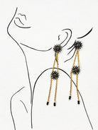 Pendientes de estrellas de cristal negro con cadenas de acero inoxidable.