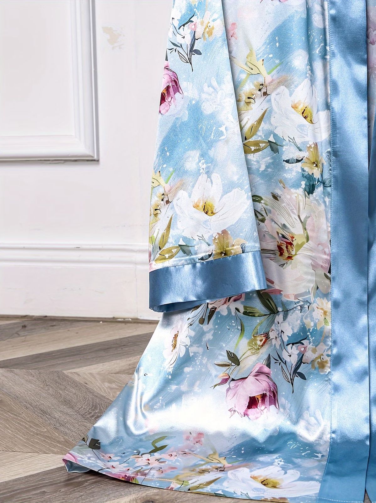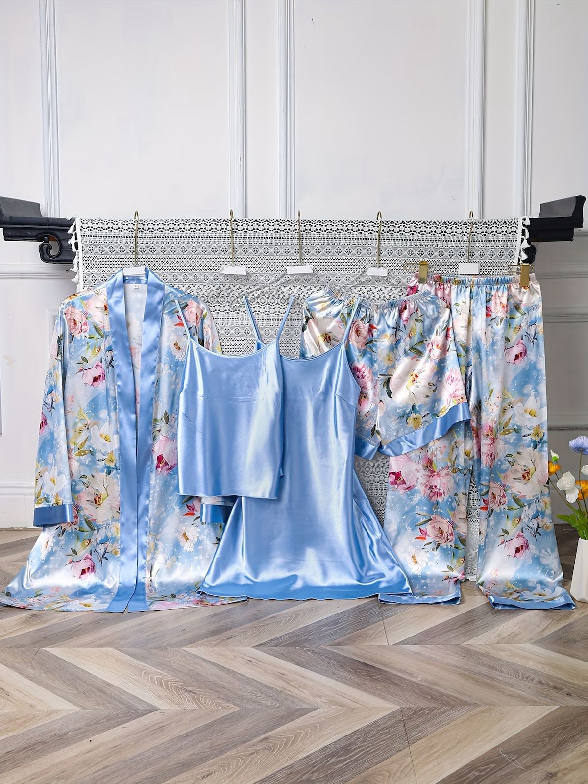 Pijama satinado de cinco piezas de la colección Jardin de Rêve, diseñado para ofrecer elegancia y confort en casa.