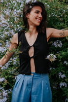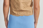 El Vest Margot es una pieza única que combina artesanía y estilo contemporáneo. Confeccionado en un corte de chaleco clásico, destaca por su delicado bordado que aporta textura, personalidad y un aire sofisticado a cualquier look.
