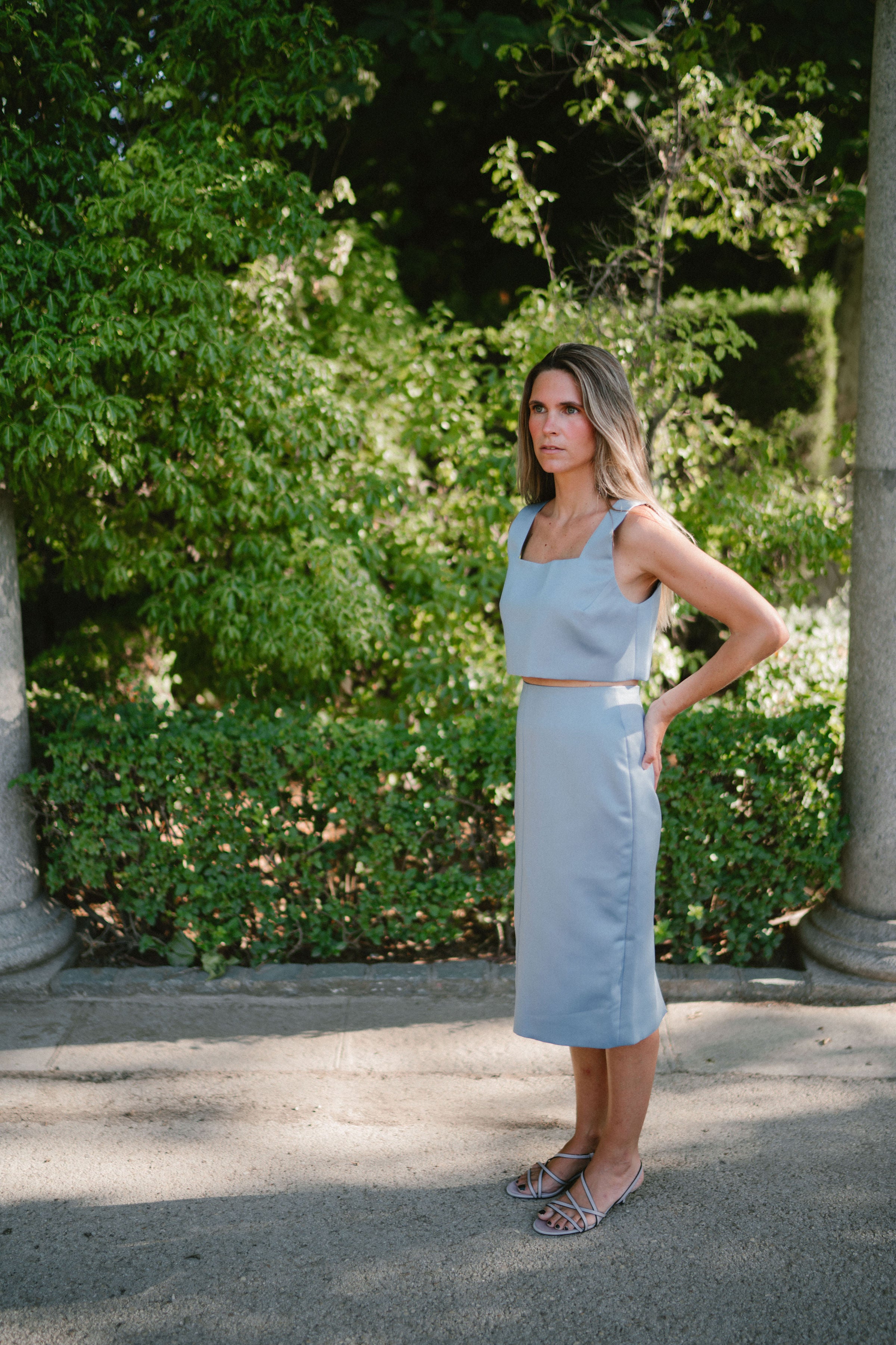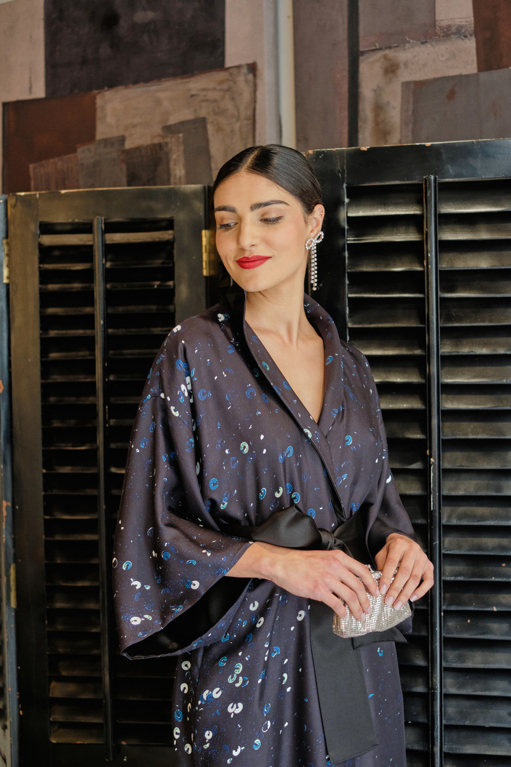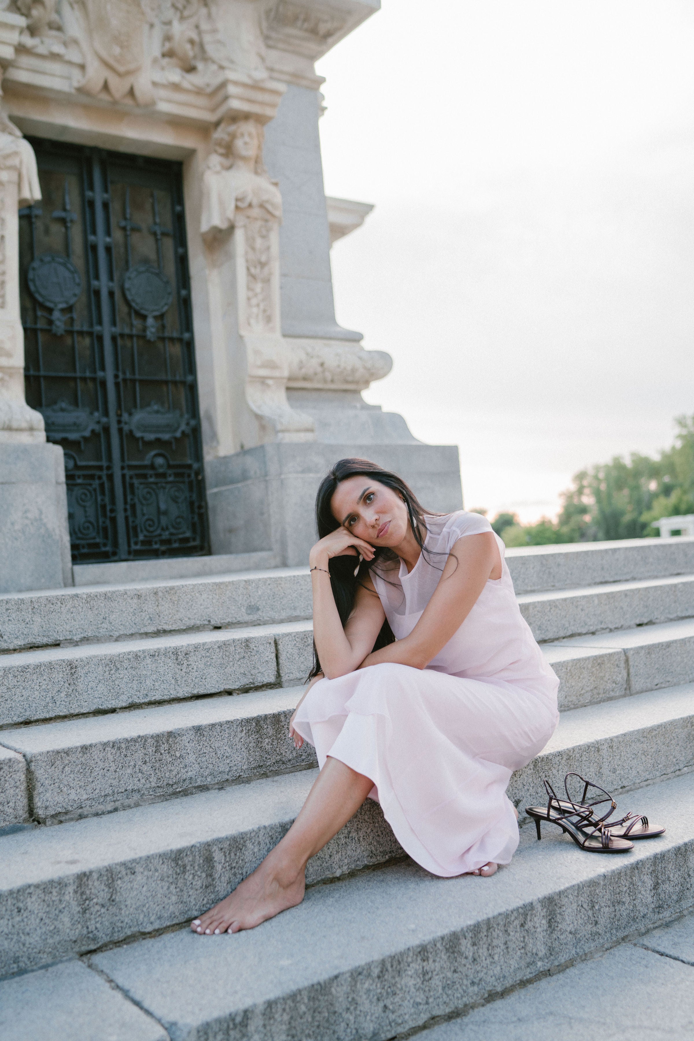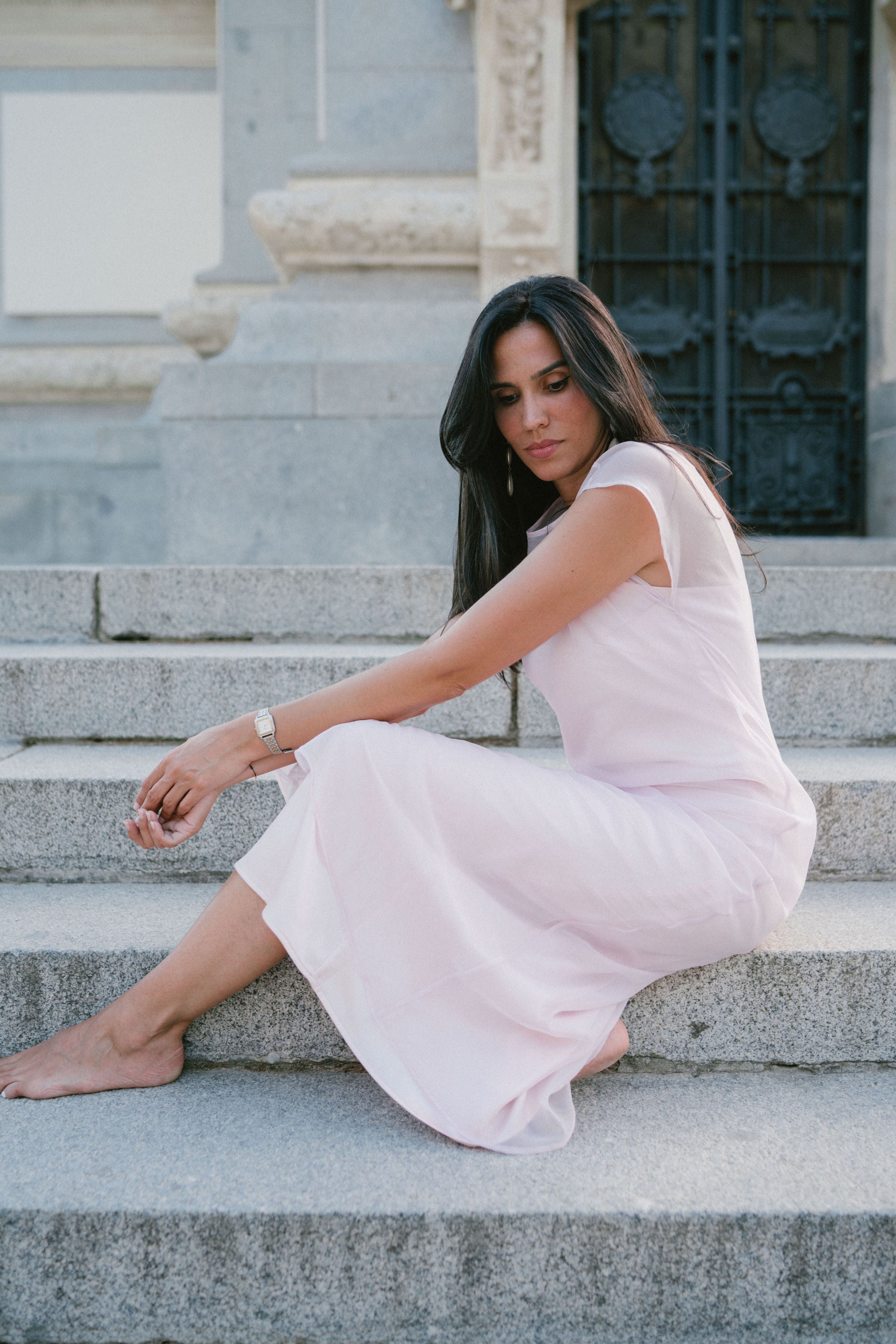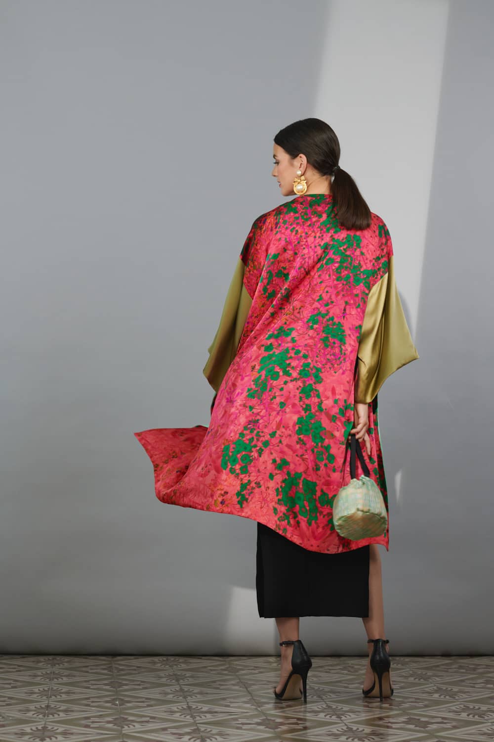 VESTIDO ROSA SATINADO CON CAPA EN ORGANZA
