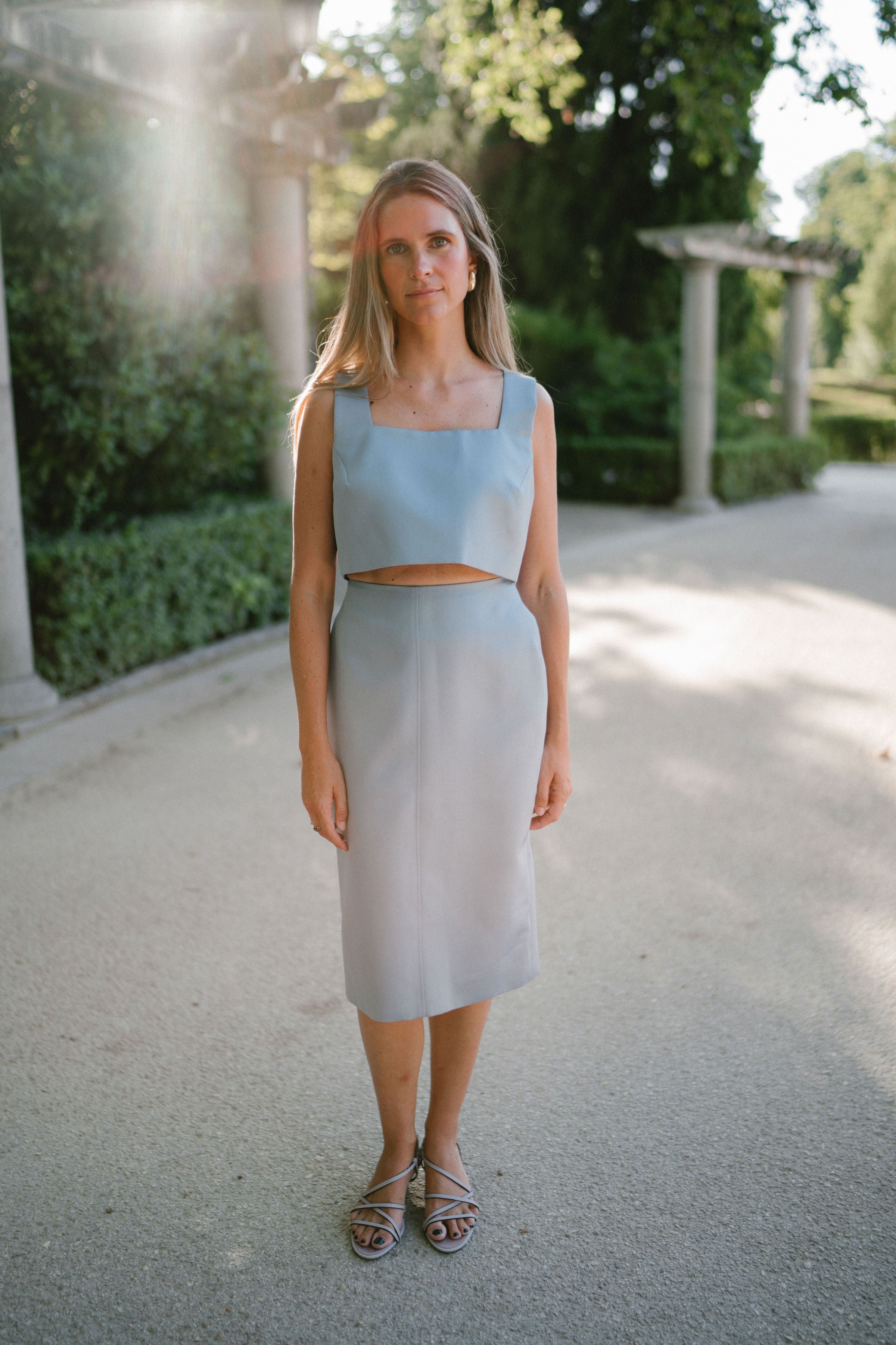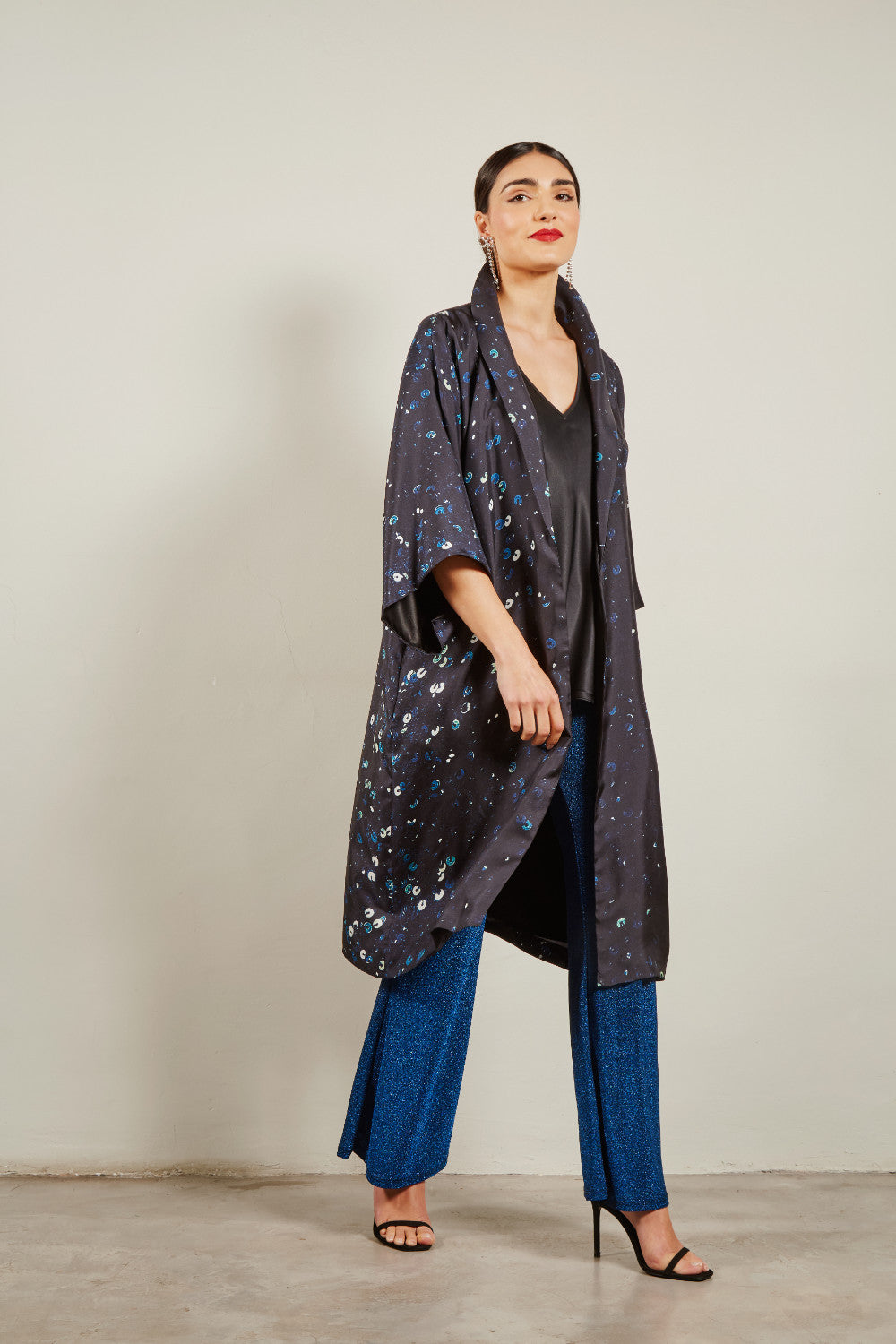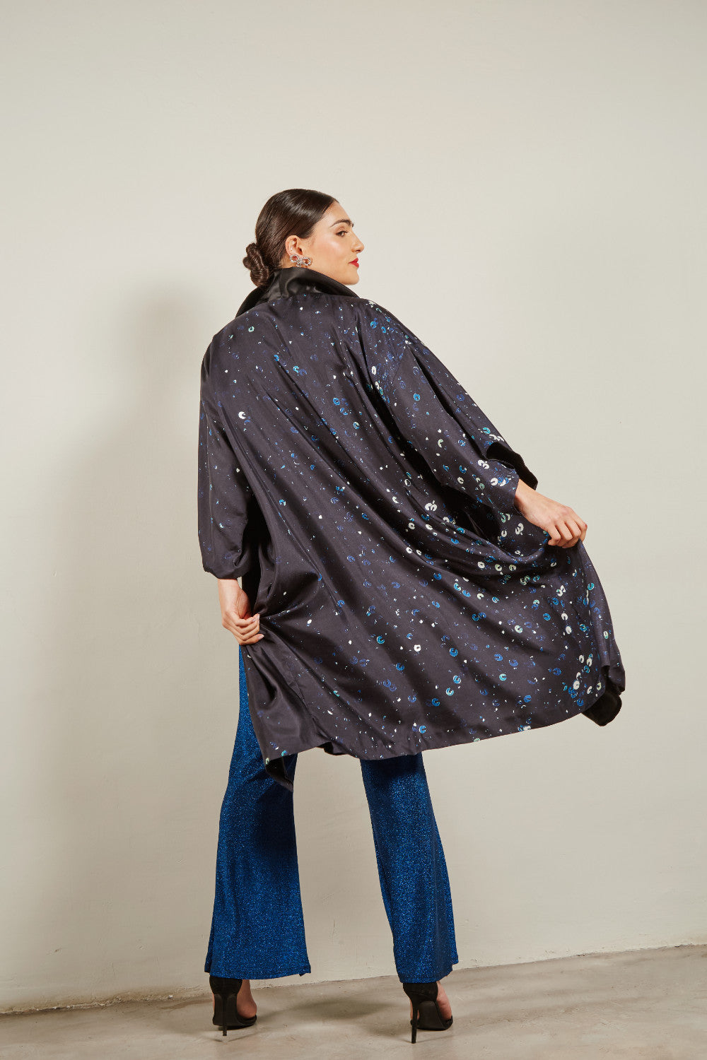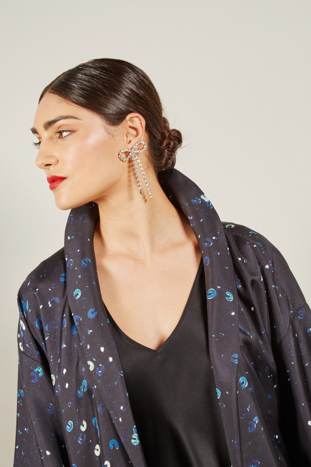 VESTIDO ROSA SATINADO CON CAPA EN ORGANZA