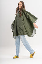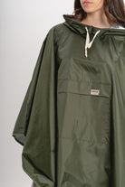 Capa tipo poncho con capucha y bolsillo en delantero.