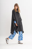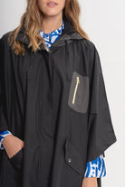 Parka o poncho para la lluvia, con capucha y cierre en el delantero.