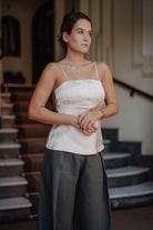 Diseñado para realzar tu silueta con la máxima comodidad. Con cazuelas incorporadas para prescindir del sujetador y lucirlo con total confianza. Forro satinado, suave sobre la piel, y una estructura impecable que abraza el cuerpo con elegancia. Los tirantes son satinados, cómodos y no resbalan. Cremallera lateral. Drapeado superior hecho a mano.