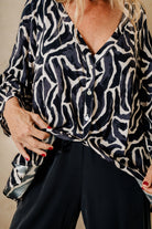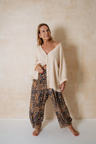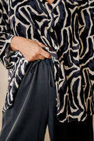 Camisa larga con estampado animal print de diseño exclusivo. Escote en pico, mangas voluminosas con frunces en los puños. Materiales: Edén está confeccionado en Viscosa EcoVero. Esta viscosa deriva de la pulpa de la madera de los árboles y es biodegradable. Su producción y la cadena de suministro es transparente y cumple altos estándares medioambientales. Cuenta con Certificado OEKO-TEX.