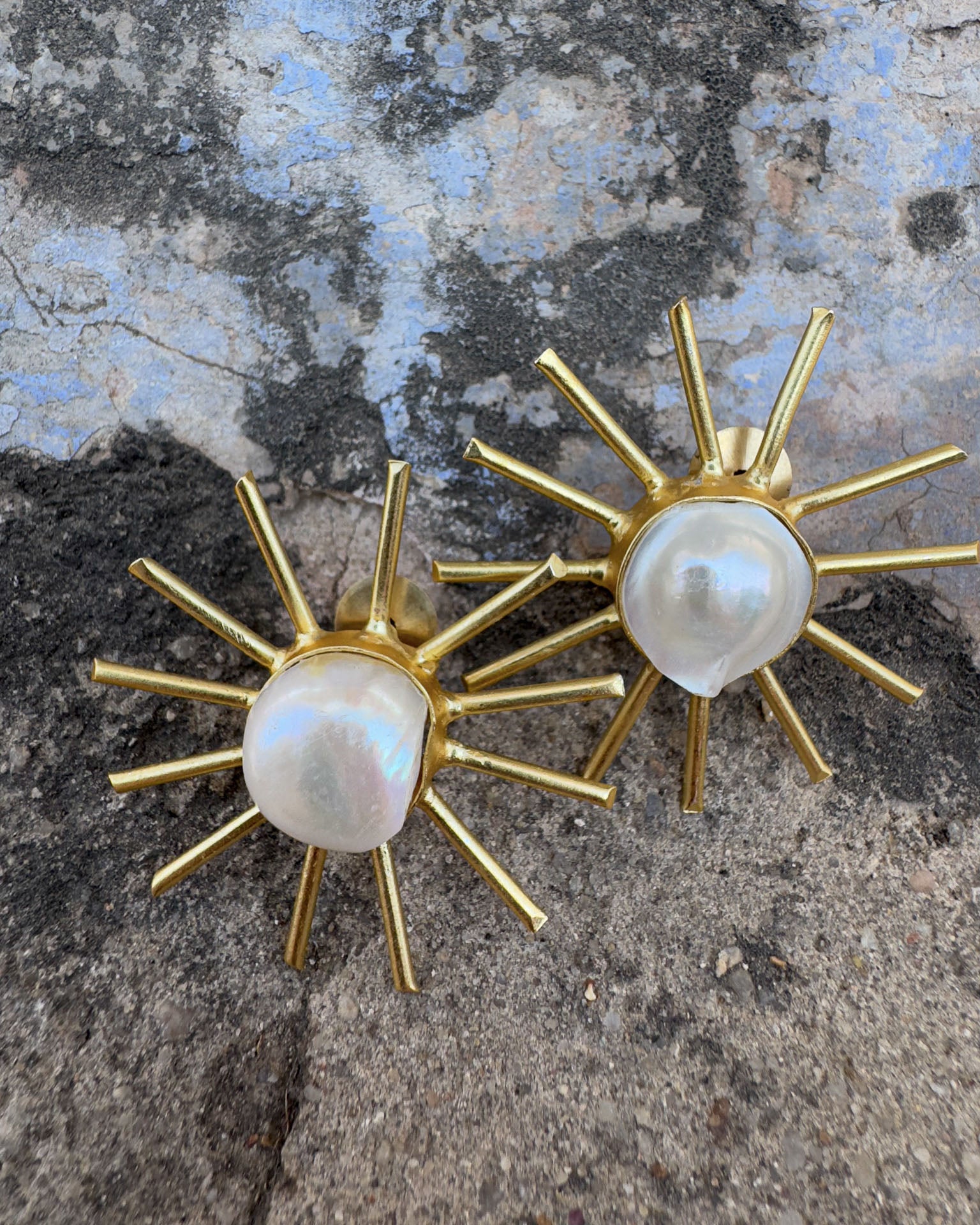 Pendientes hechos a mano. MATERIALES: Perla barroca engastada en latón con baño de oro 18K. COLECCIÓN: Catalina Socias 2026.