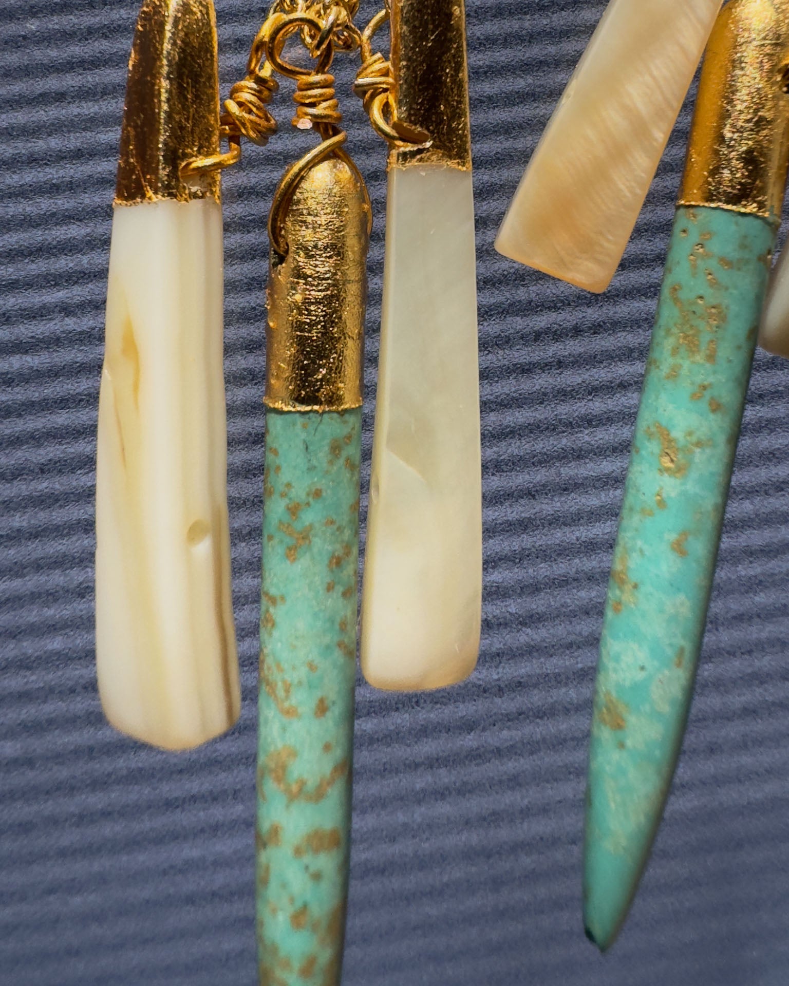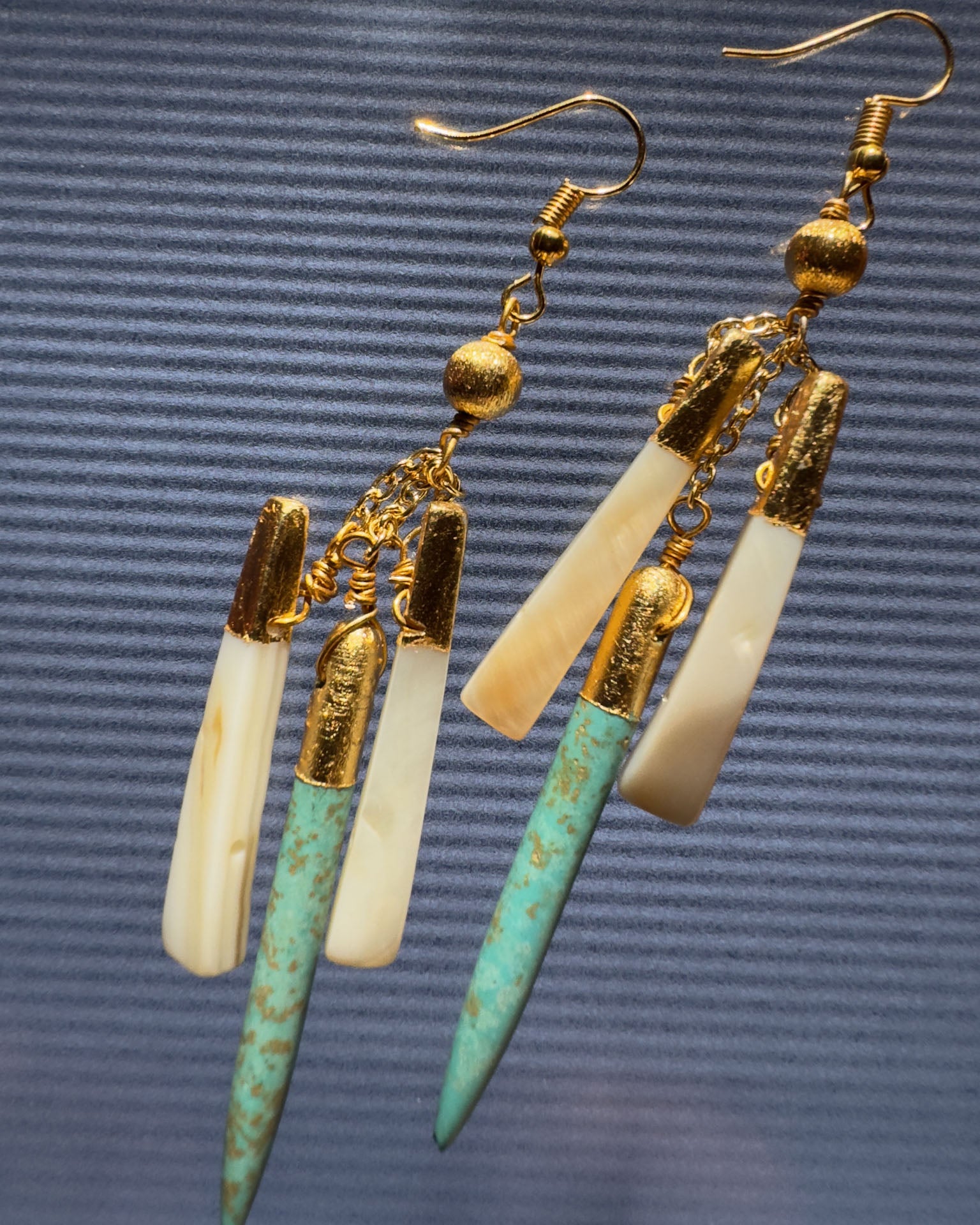 Pendientes turquesa, blanco y dorado - (Collar y pendientes separados)