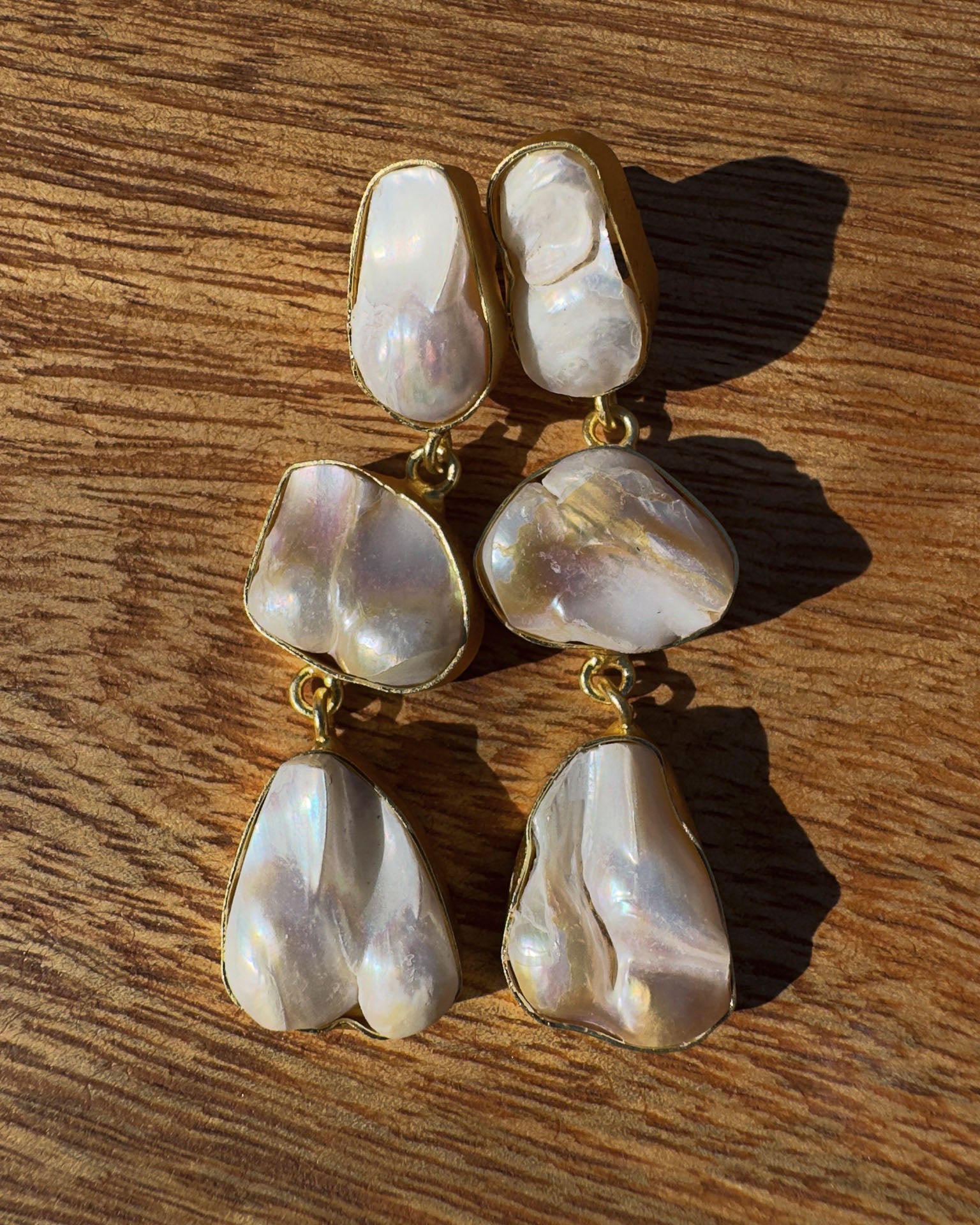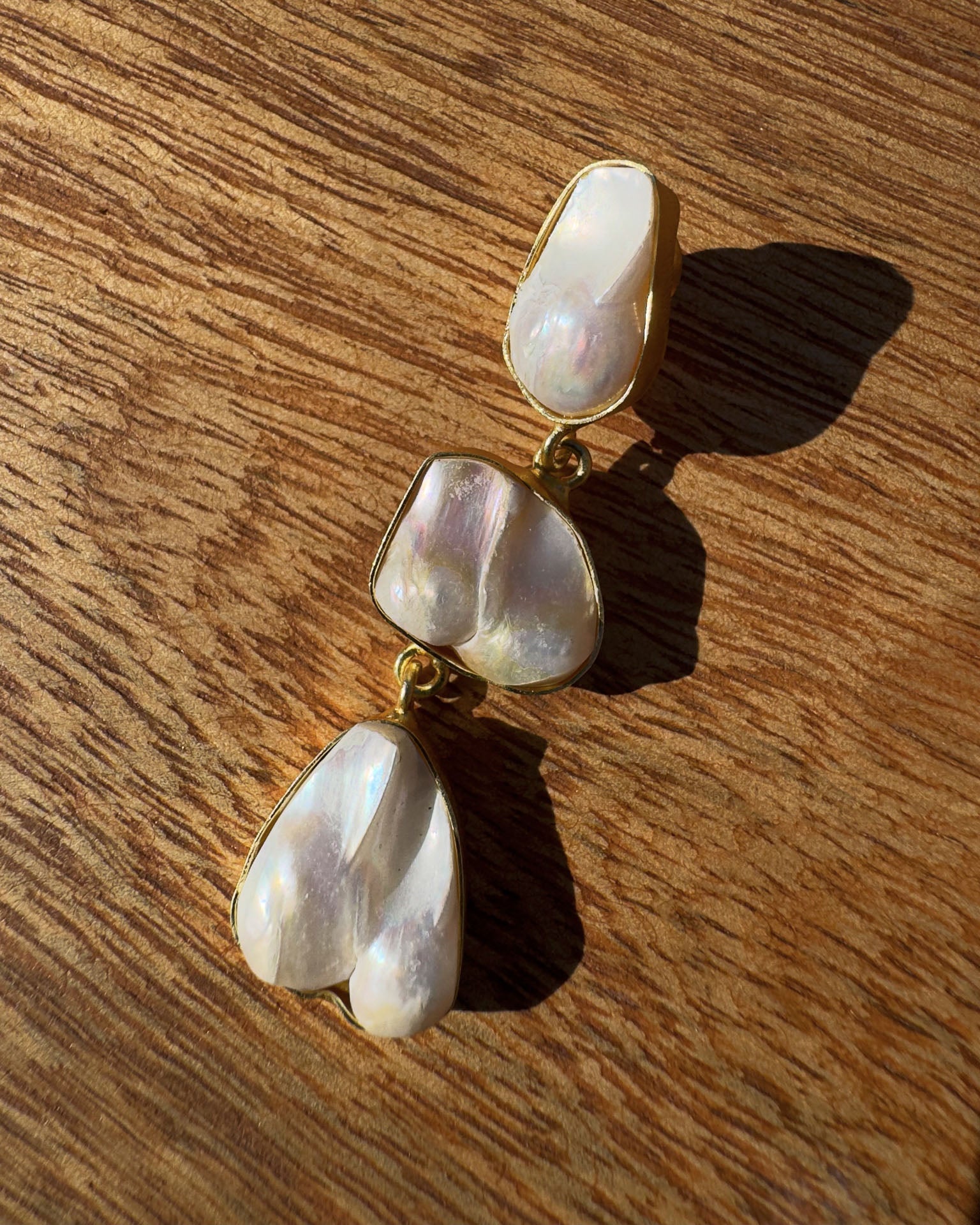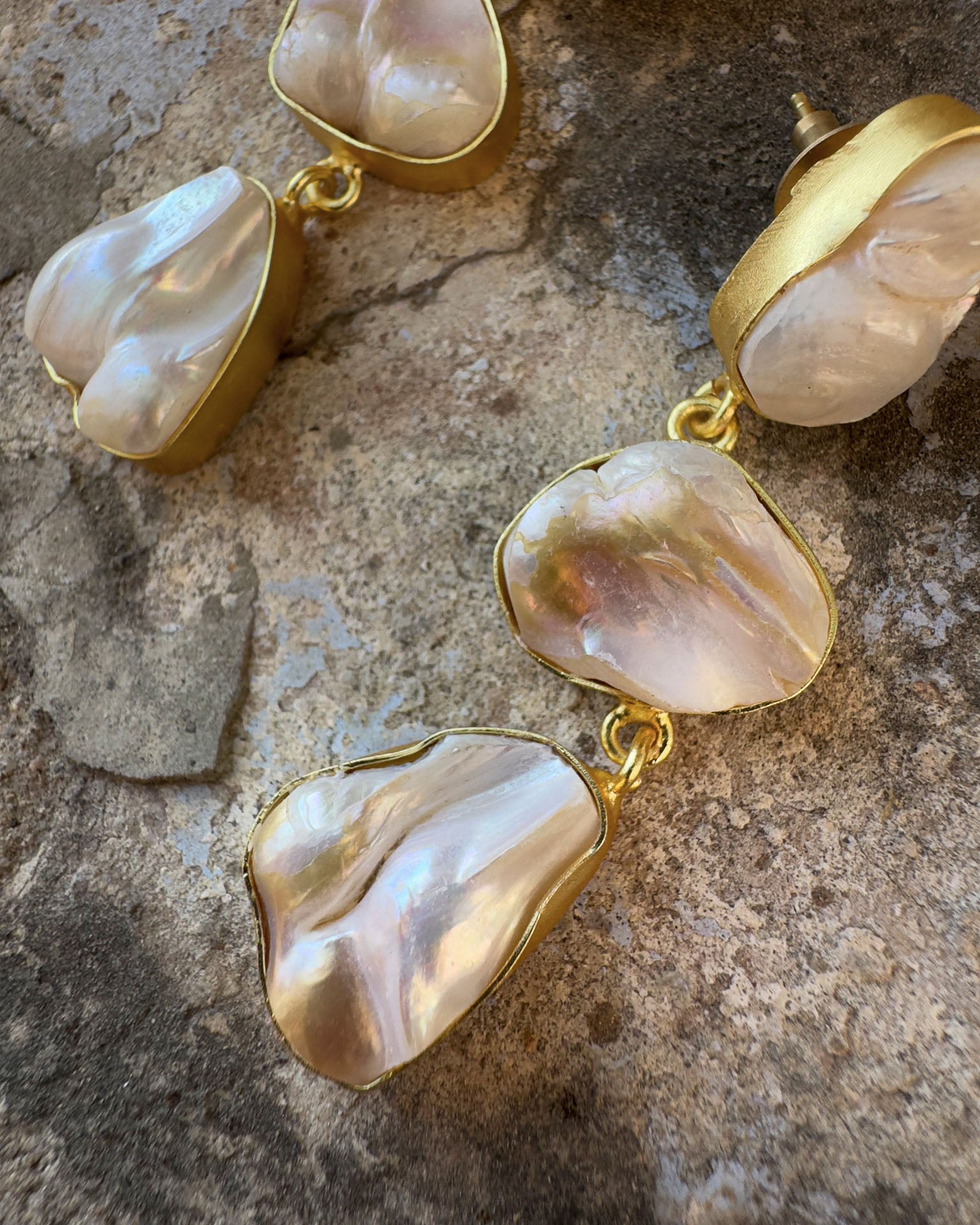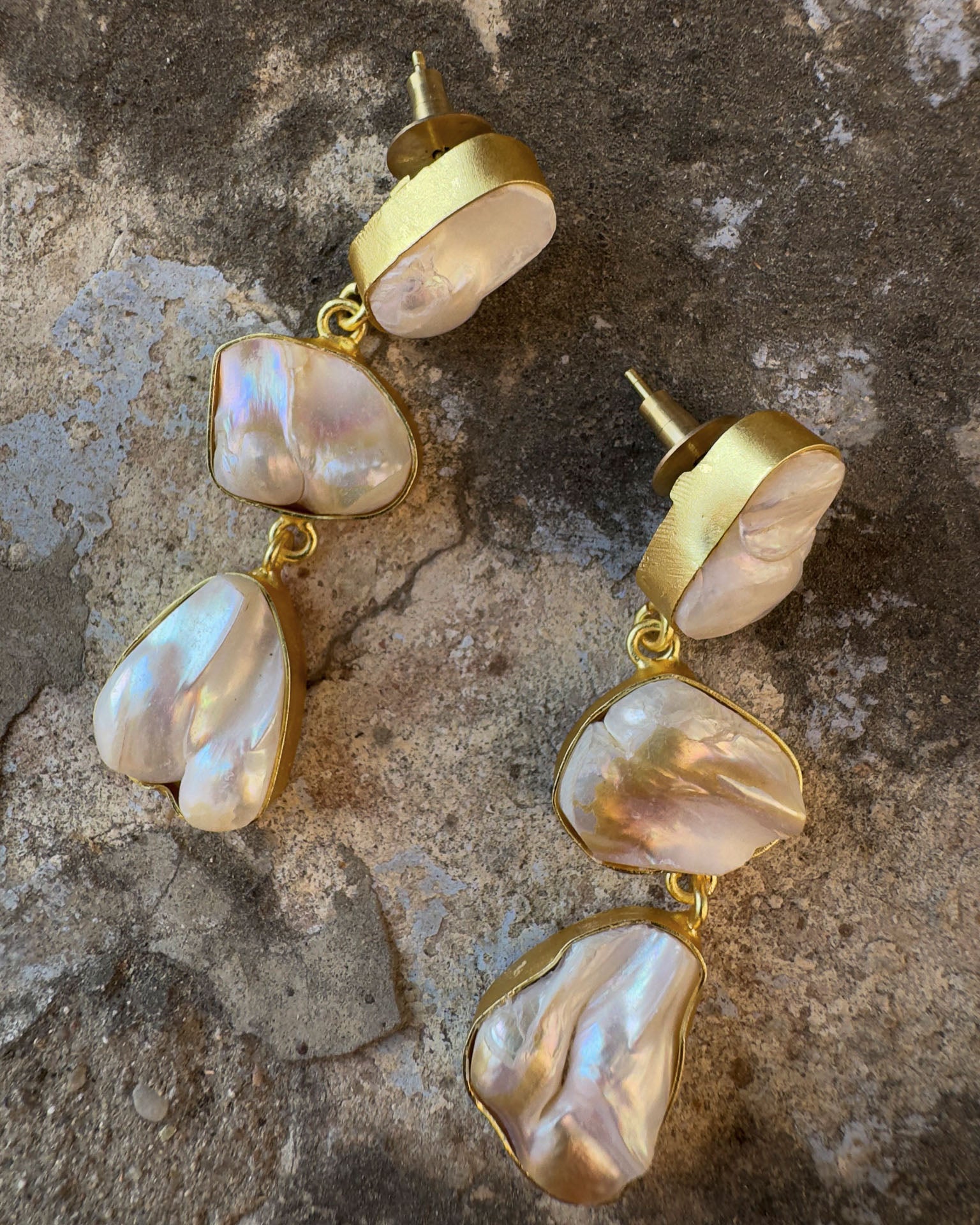 Pendientes hechos a mano. MATERIALES: Perla barroca engastada en latón con baño de oro 18K. COLECCIÓN: Catalina Socias 2026.