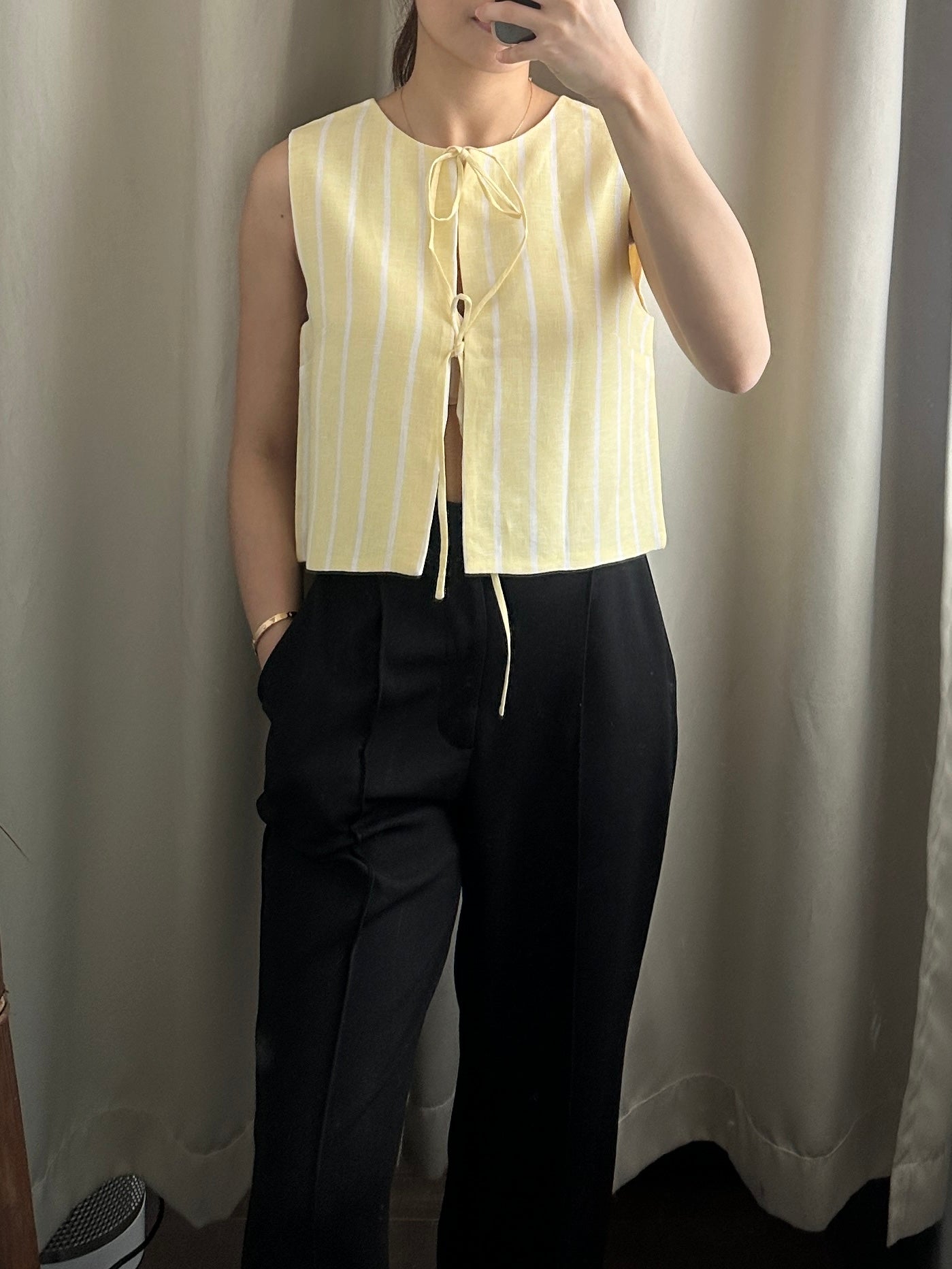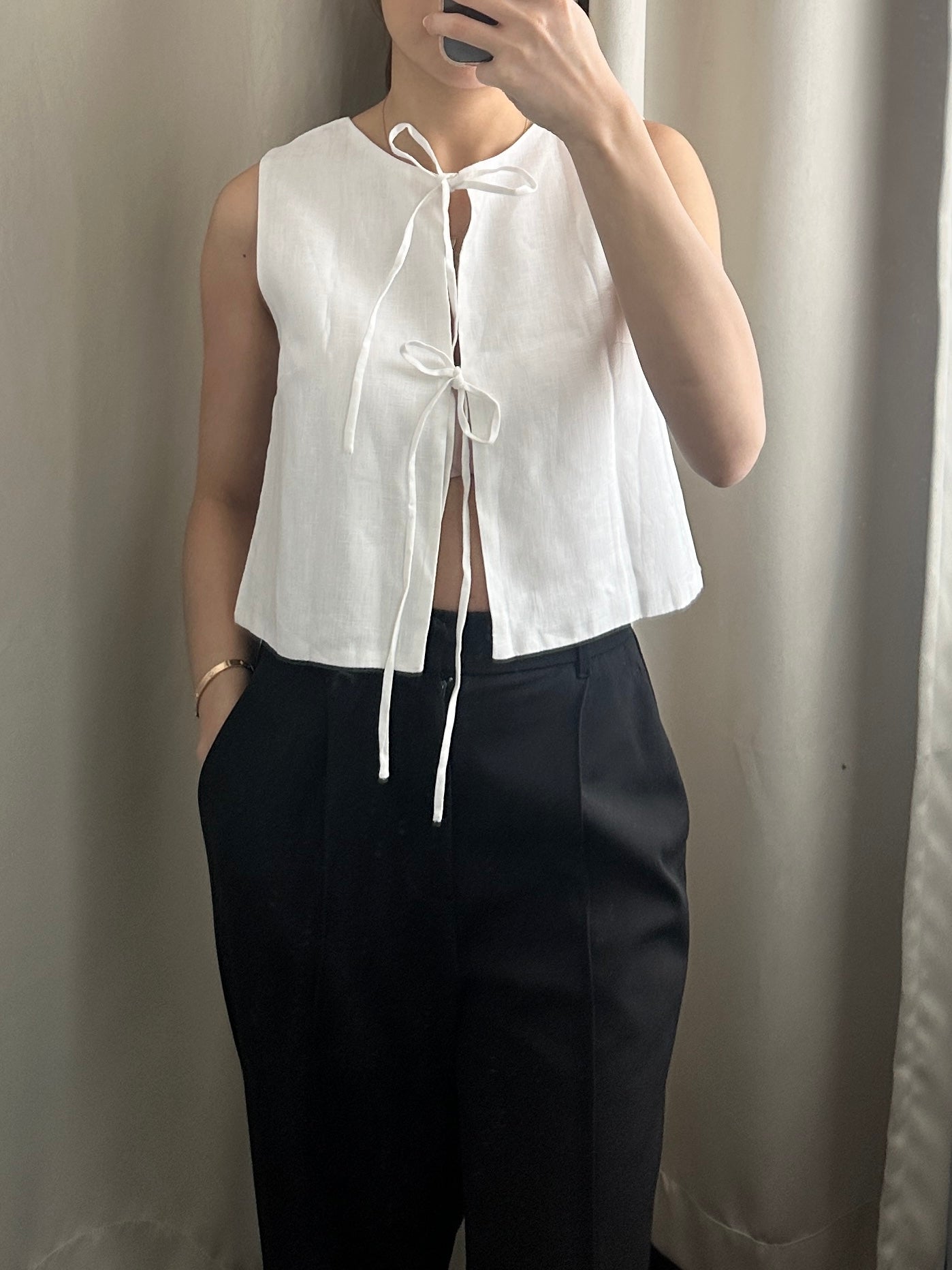 Handmade from 100% Sustainable Linen. This top features a relaxed silhouette and signature front ties. Fully lined.