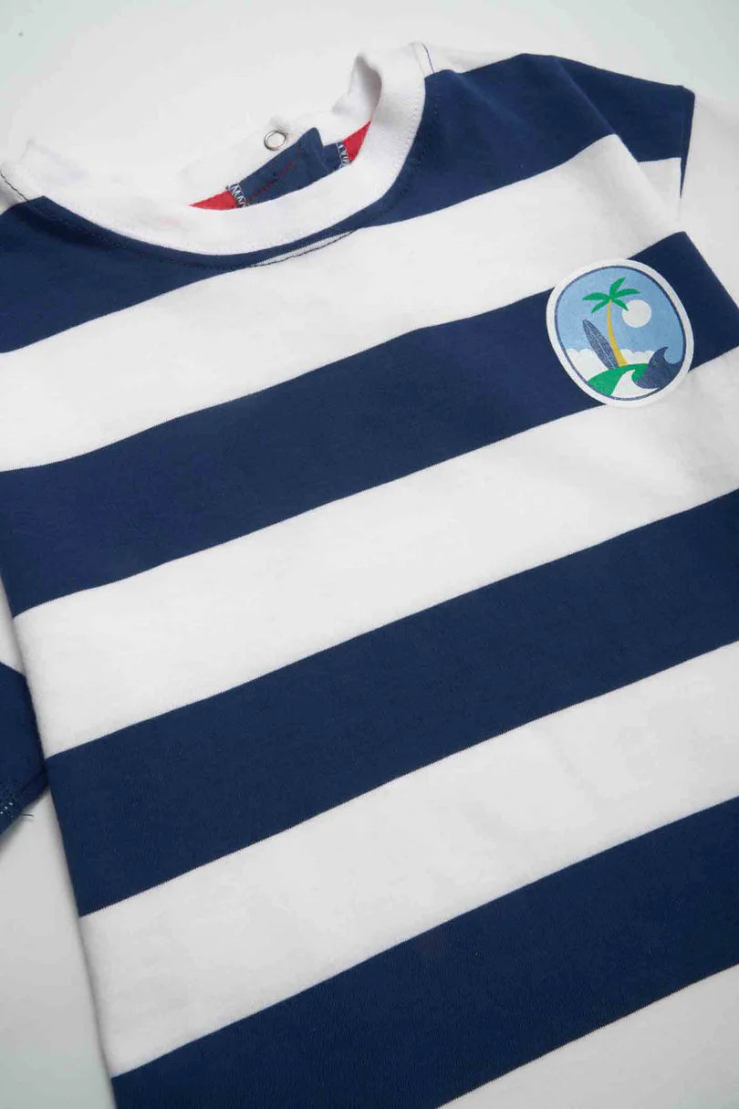 Descubre la CAMISETA MILO, una prenda ideal para el verano, diseñada especialmente para niños. Con su manga corta y tejido de jersey rayado, cuenta con un cuello de ribb que asegura mayor durabilidad y evita el desgaste, además de una práctica cartera en la parte trasera. ¡Perfecta para mantener a tus pequeños cómodos y a la moda!