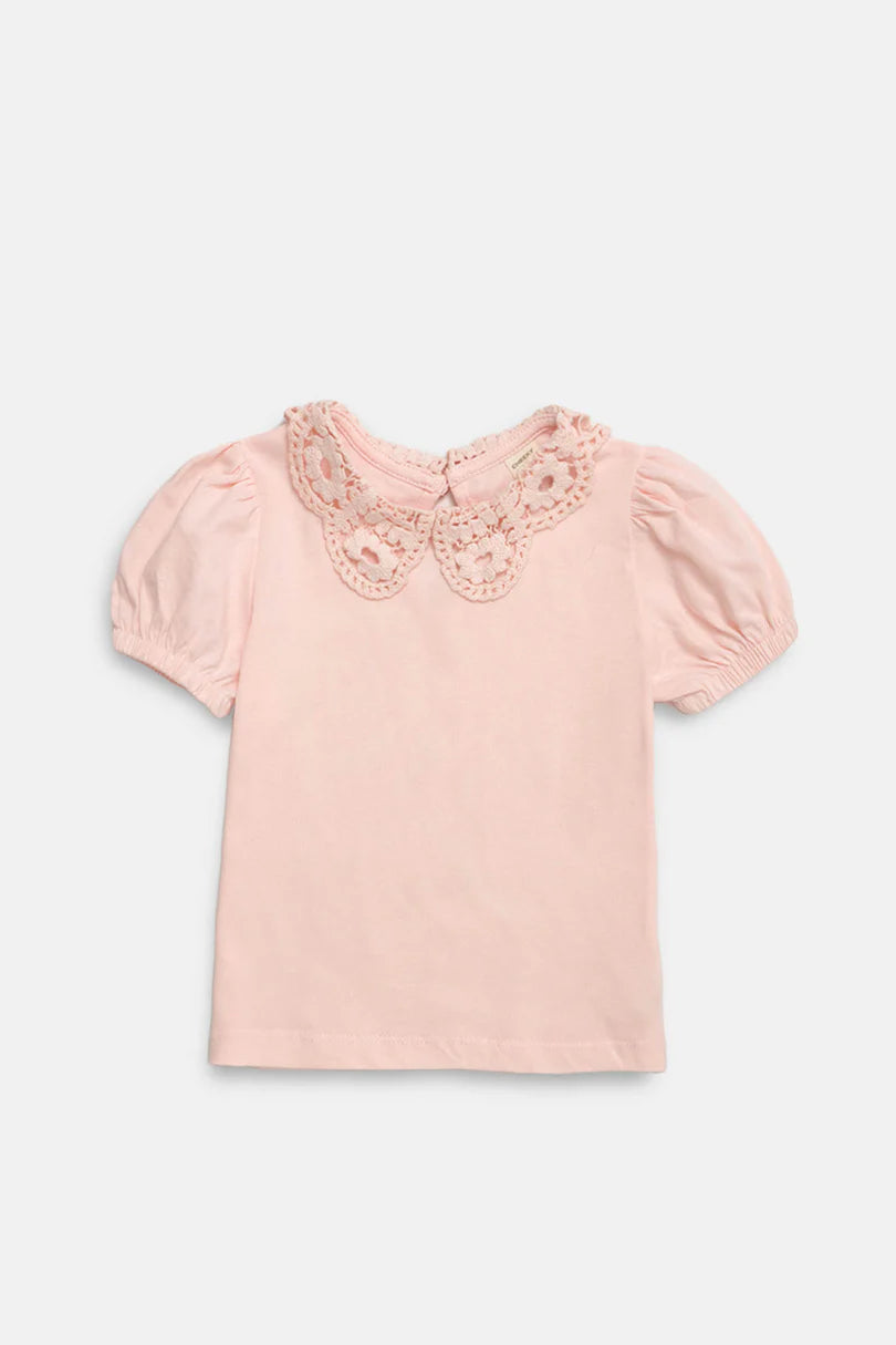 Descubre la CAMISETA NATALIE, una prenda ideal para el verano, diseñada especialmente para niños. Con su manga corta, acceso por cuello bolsa y delicados bolados en el cuello, esta camiseta 100% algodón en tonos crudo, rosa y rojo es perfecta para mantener a tus pequeños cómodos y a la moda.