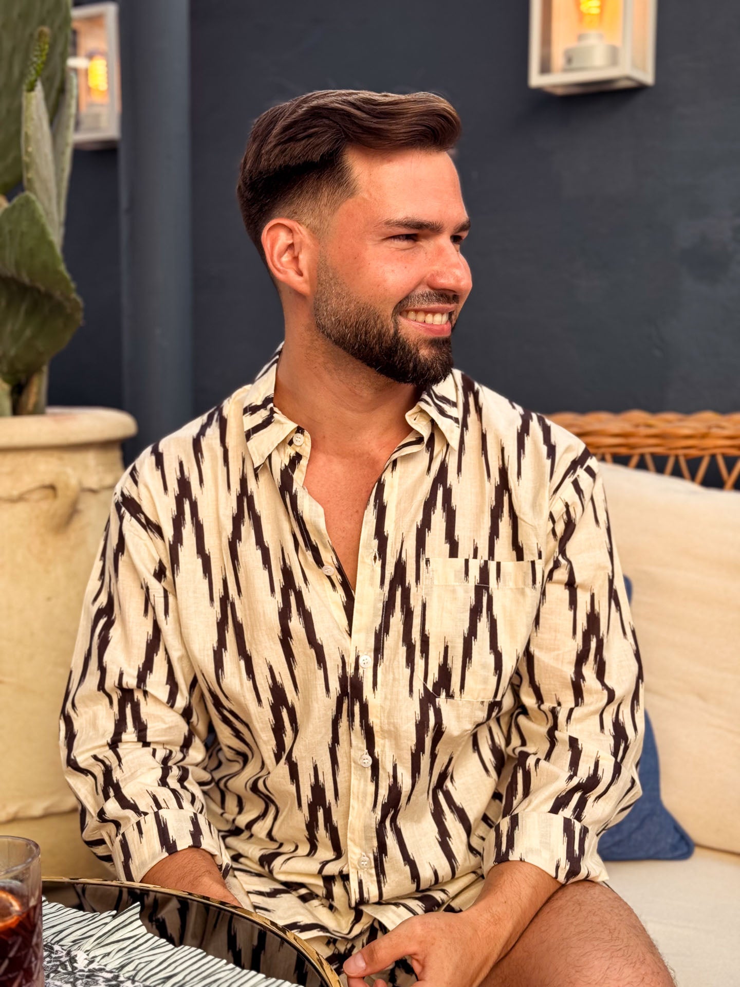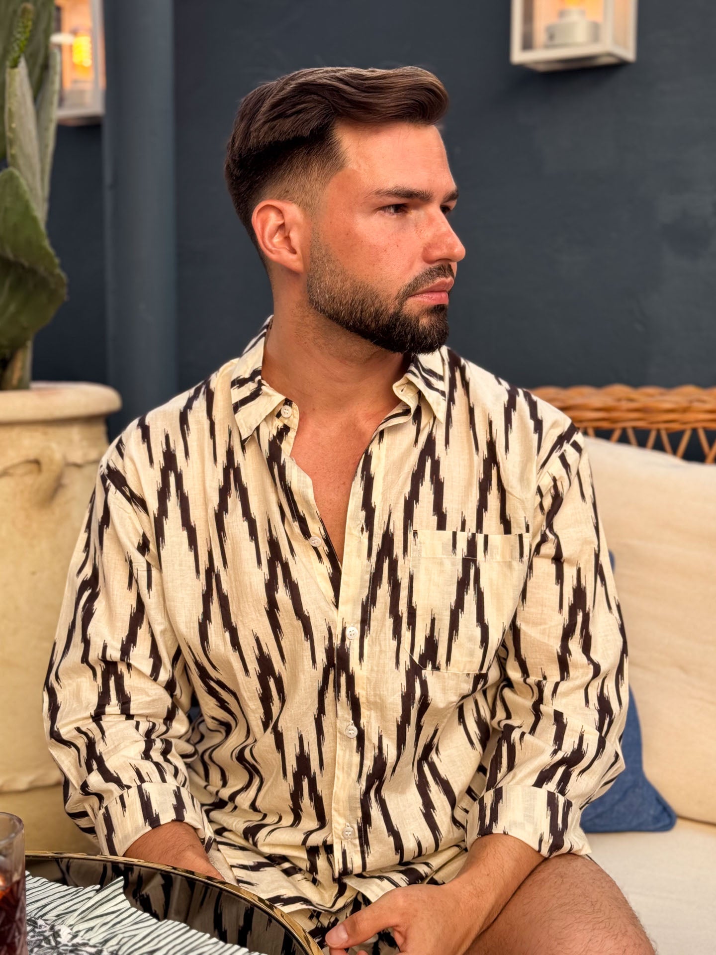 Camisa Ikat - Blanco y Negro