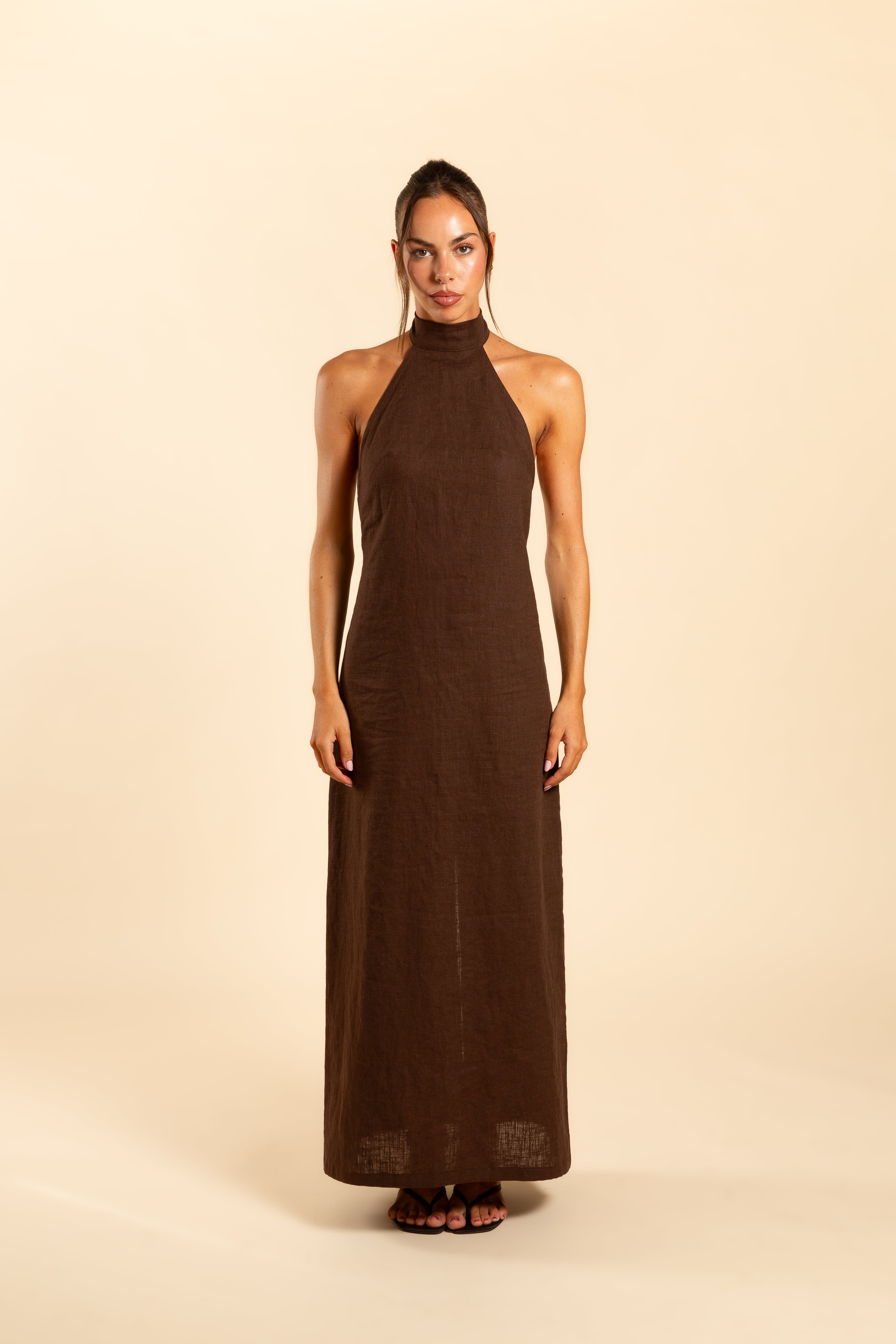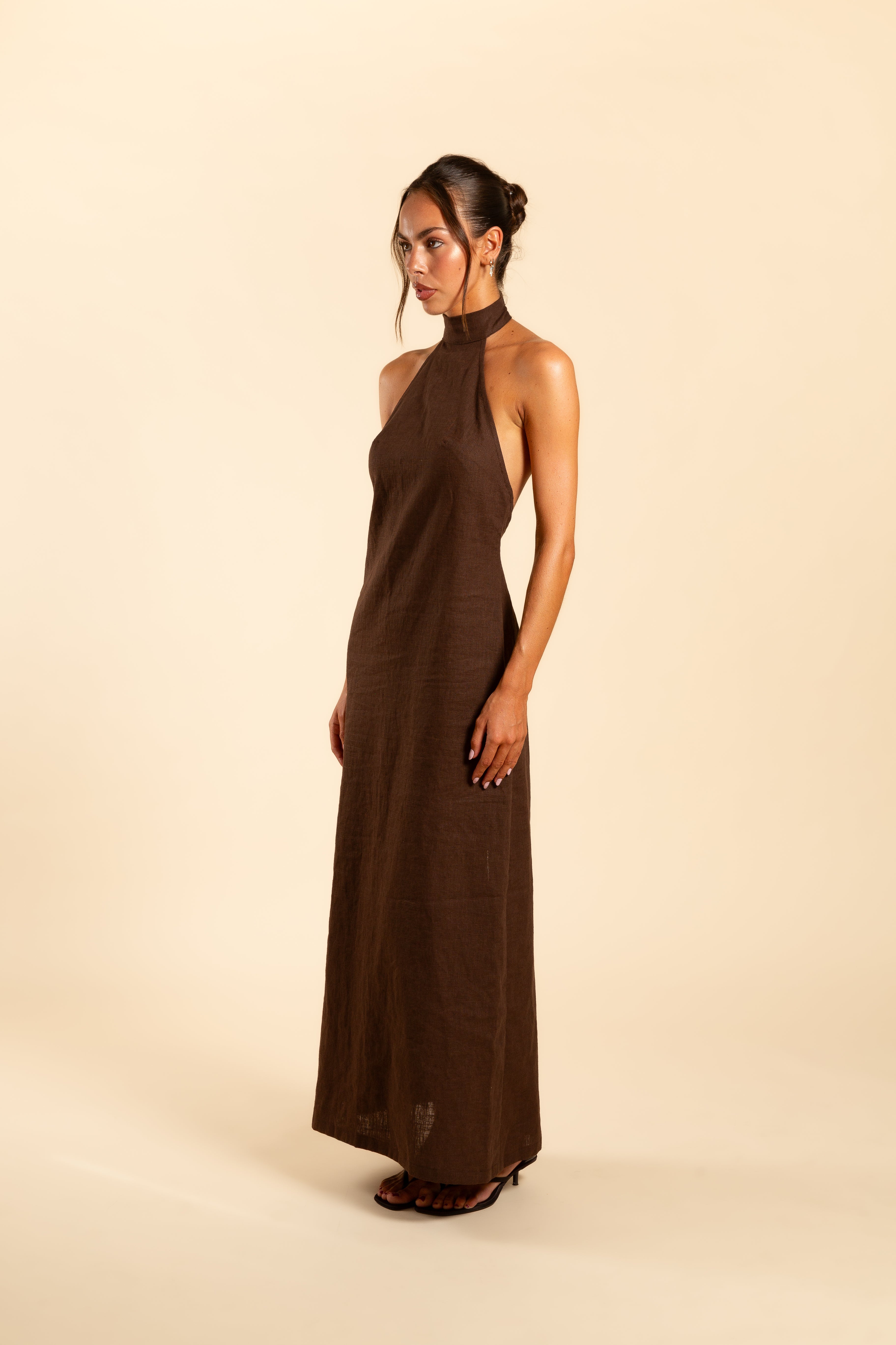 HALTER DRESS | BROWN