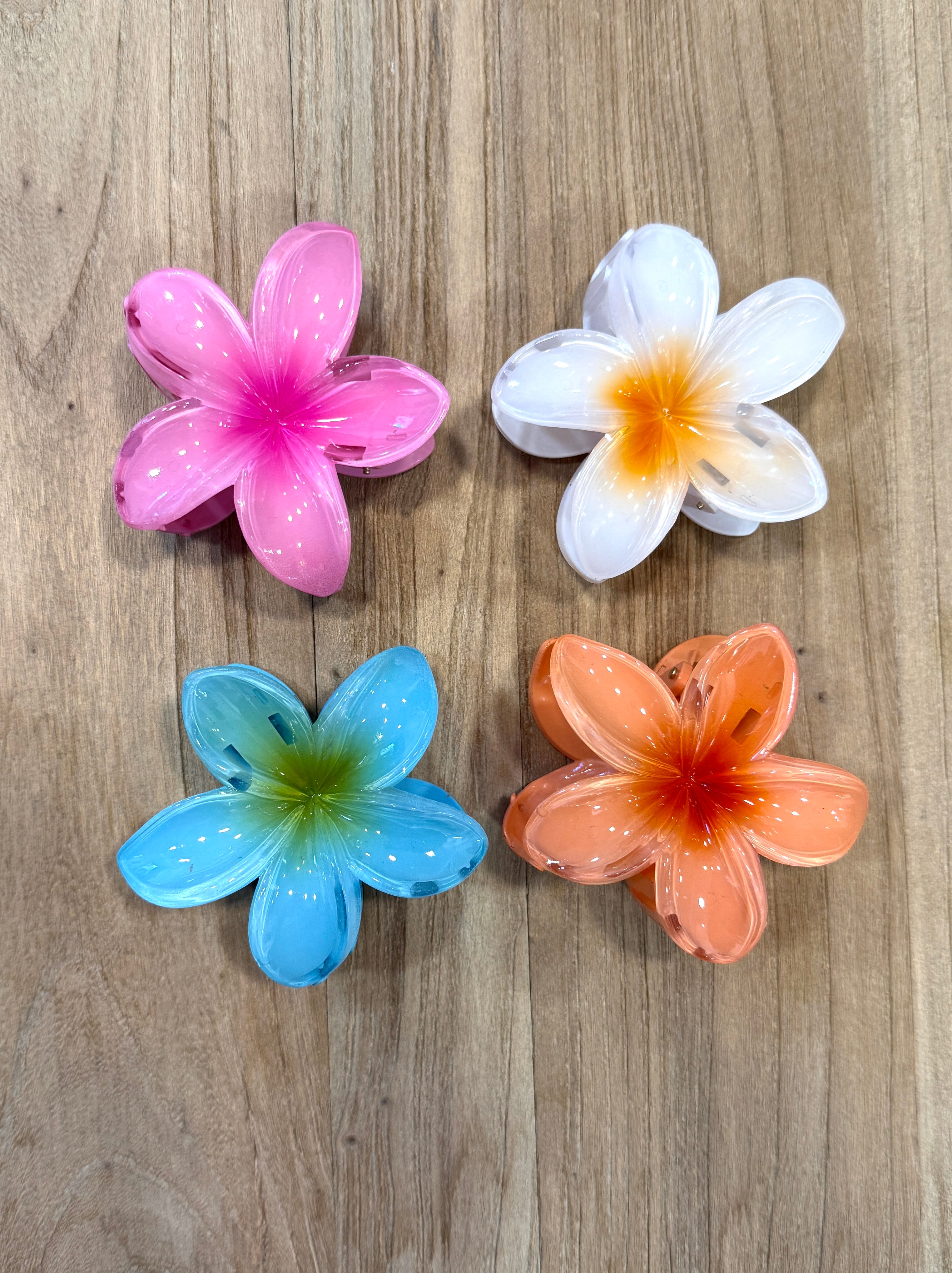 A set of 3 decorative hair clips , each with a flower design featuring a color gradient effect. Made from textile and polyester materials, they are ideal for securing hair with a feminine and decorative touch. All 3 clips for €5.
