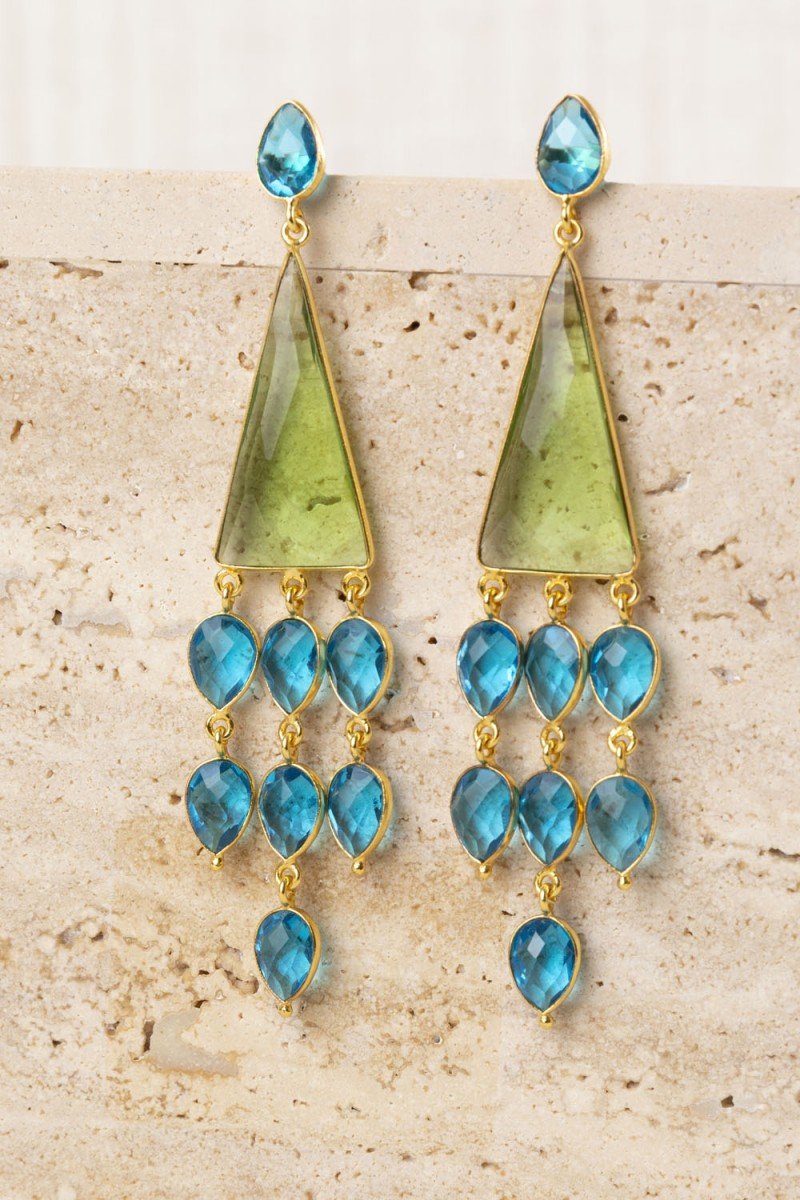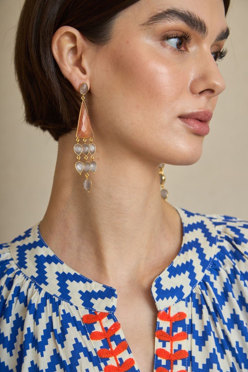 Una pieza que combina color y luz en perfecta armonía. Elaborados con piedras naturales en diferentes tonos combinadas con latón con baño de oro, son el complemento perfecto y elevan cualquier look con un punto sofisticado.