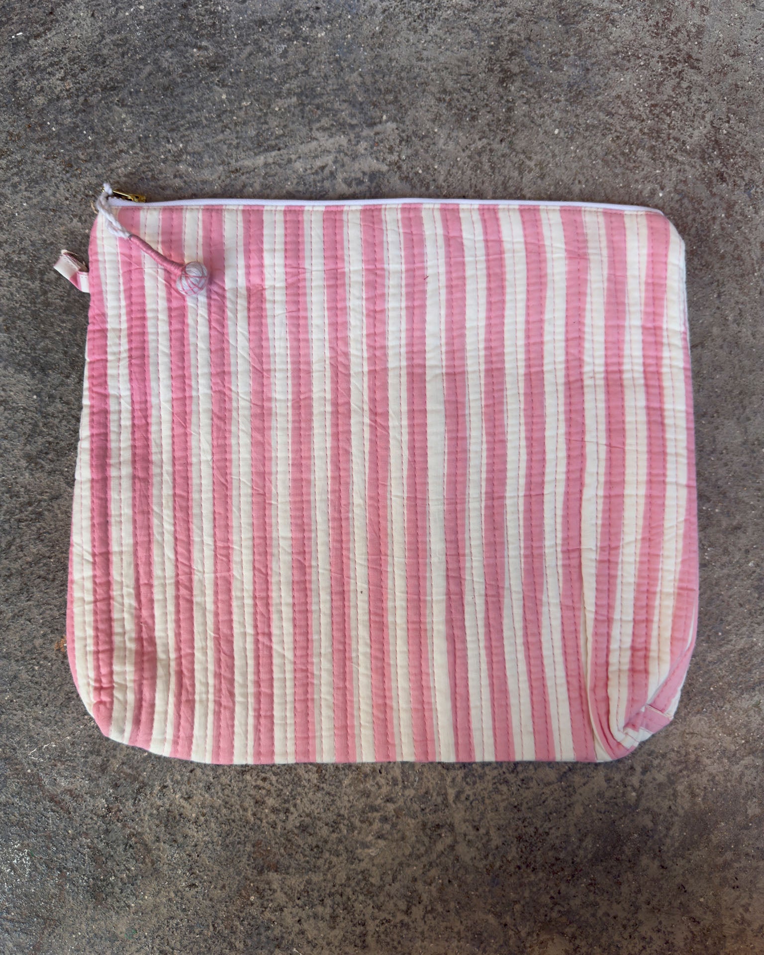 Bolsa de rayas blanco y rosa