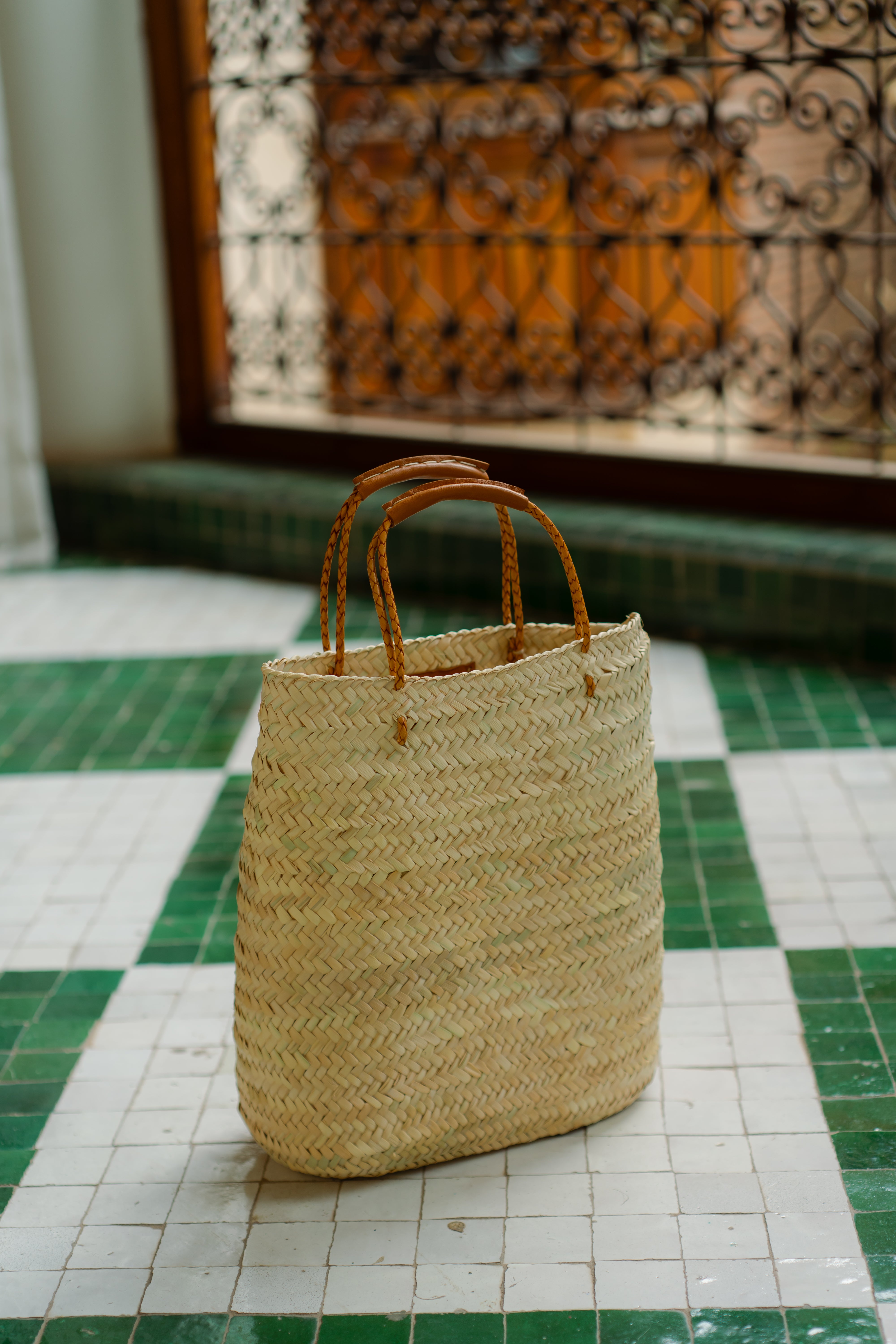 Bolso/Cesta de palmito realizado a mano tamaño mediano. MATERIAL: Palmito. ORIGEN: Marruecos. COLECCIÓN: Catalina Socias 2026. CUIDADOS: Limpieza delicada / No sumergir
