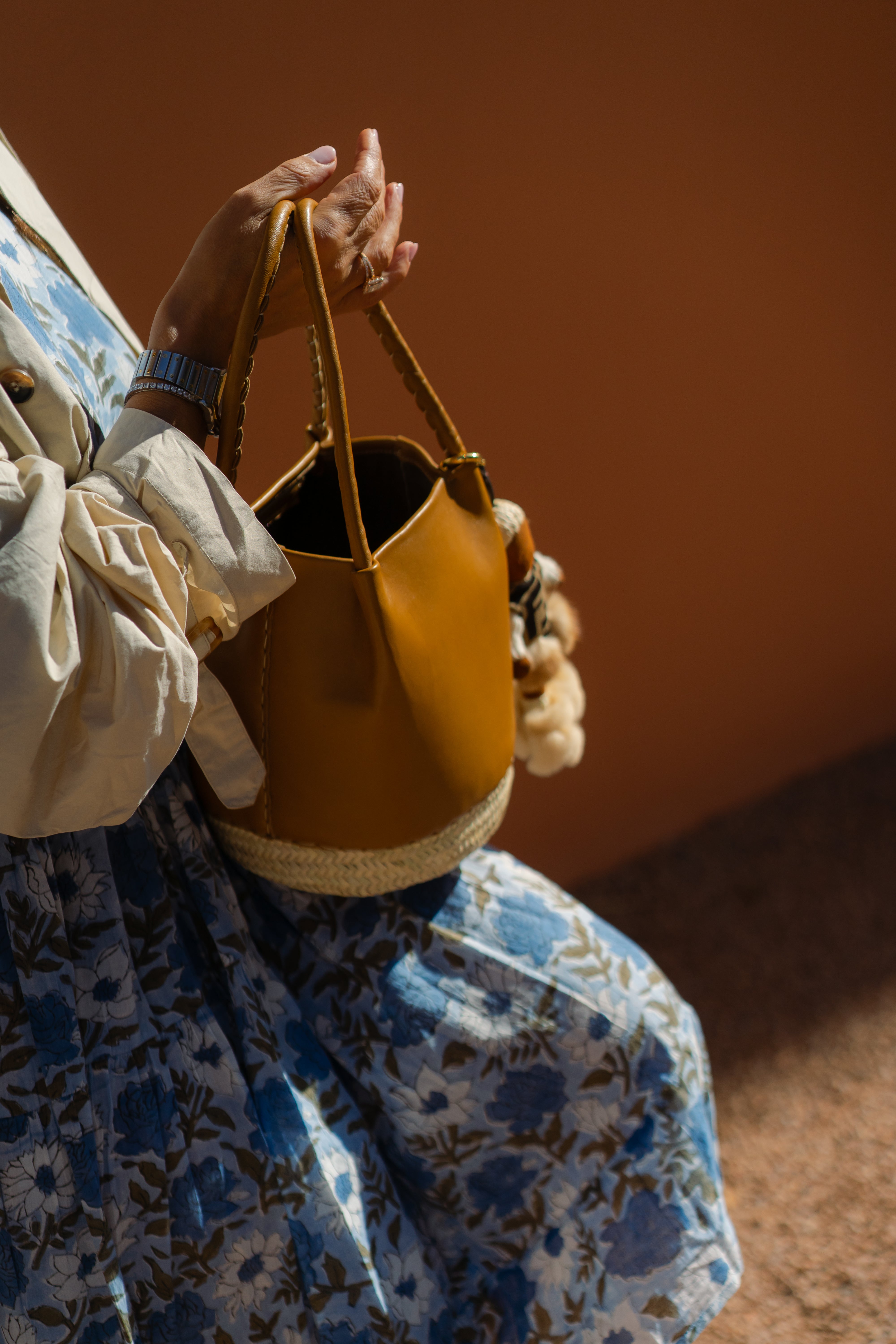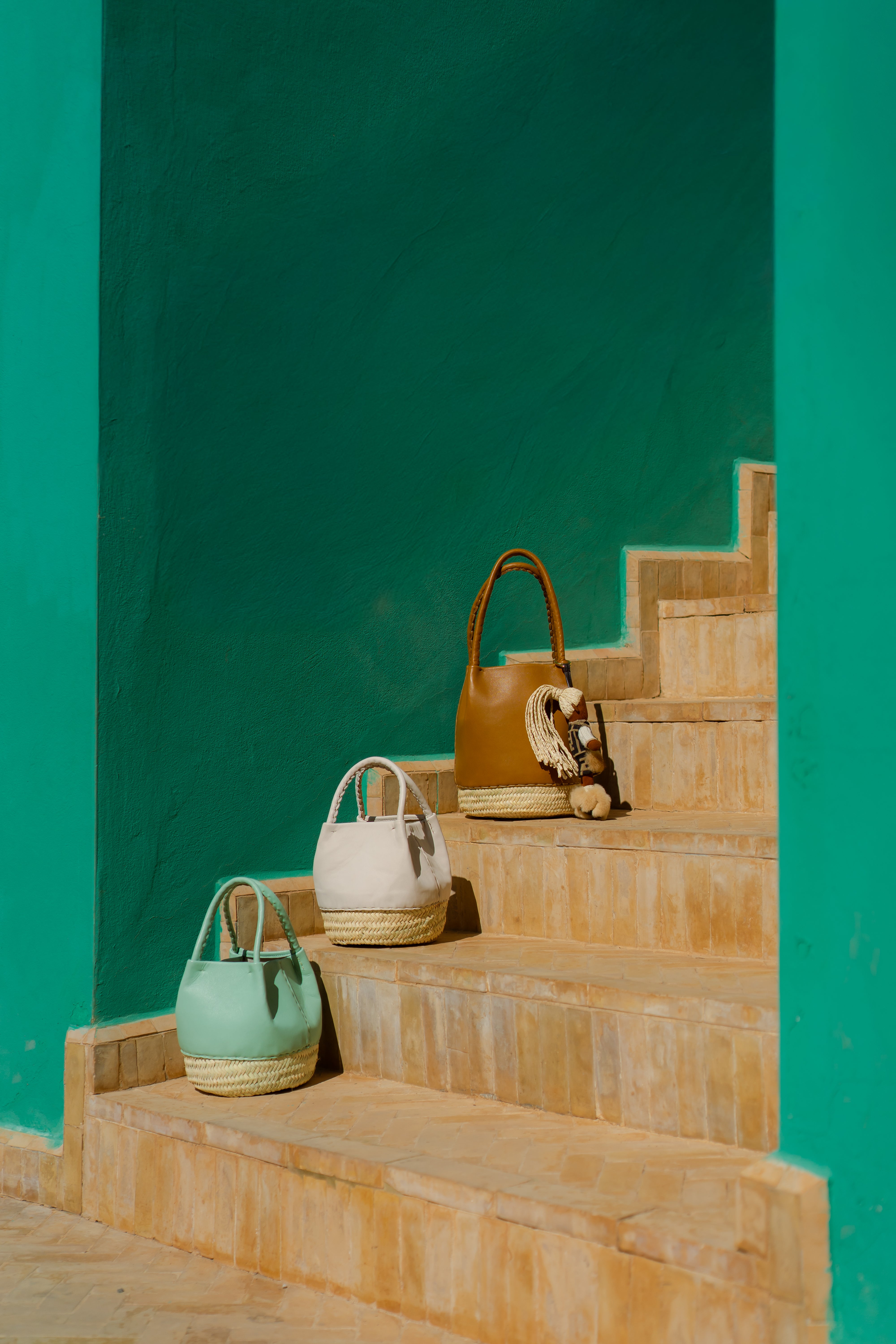 Bolso de piel y palmito realizado a mano tamaño grande. MATERIAL: Piel y palmito. ORIGEN: Marruecos. MEDIDAS: 21x18 cm aproximadamente. COLECCIÓN: Catalina Socias 2026. CUIDADOS: Limpieza delicada / No sumergir