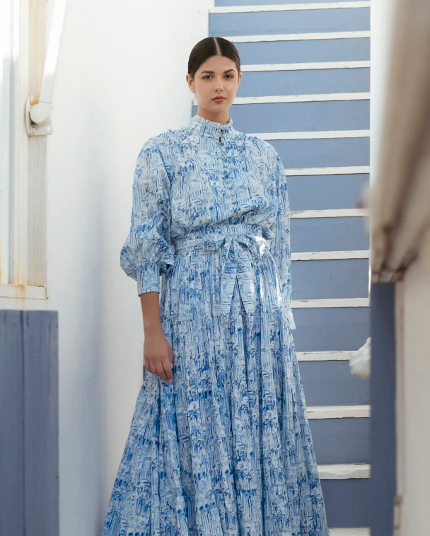 Maxifalda con cintura elástica y lazo decorativo. MATERIAL: 100% Algodón. ORIGEN: India. COLECCIÓN: 2025 by Catalina. CUIDADOS: Lavar a mano/ No usar secadora/ No usar legía / Planchado suave.