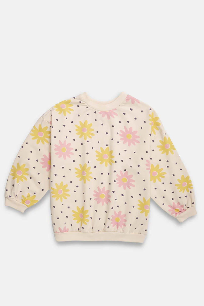 Descubre la SUDADERA SUNSHINE, un cómodo y colorido sudadera estampado con cuello redondo, puños y bajo de rib, ideal para el verano. Confeccionado en 100% algodón y con puños adornados con bordado picot, es la elección perfecta para mantener a tus pequeños frescos y a la moda.