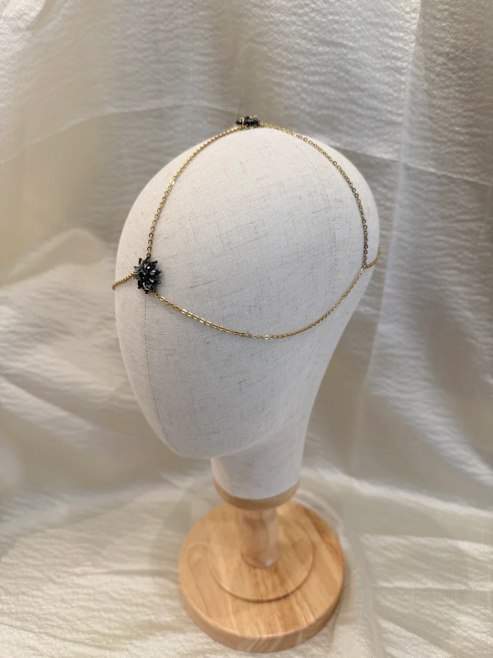 Casquete de cadena de acero con estrellas de cristal antracita.