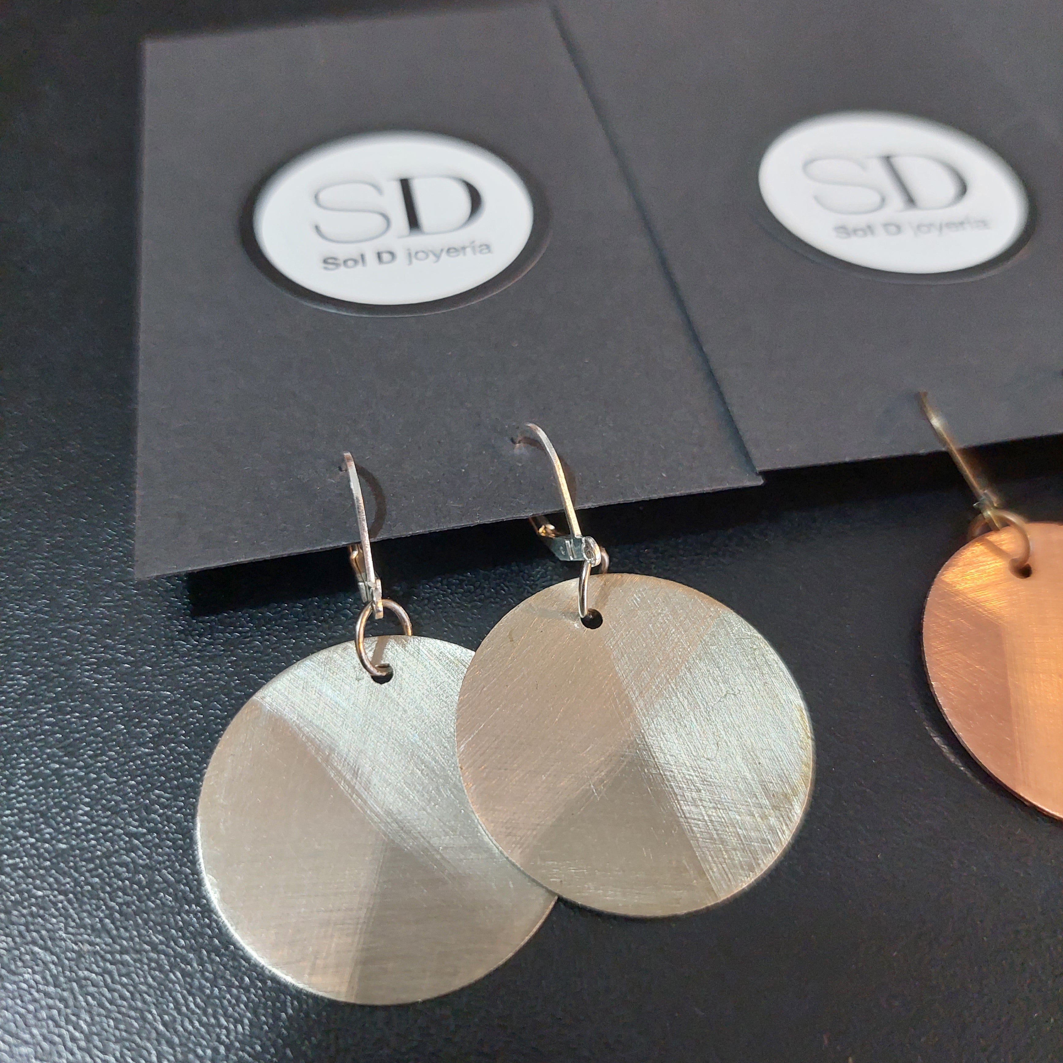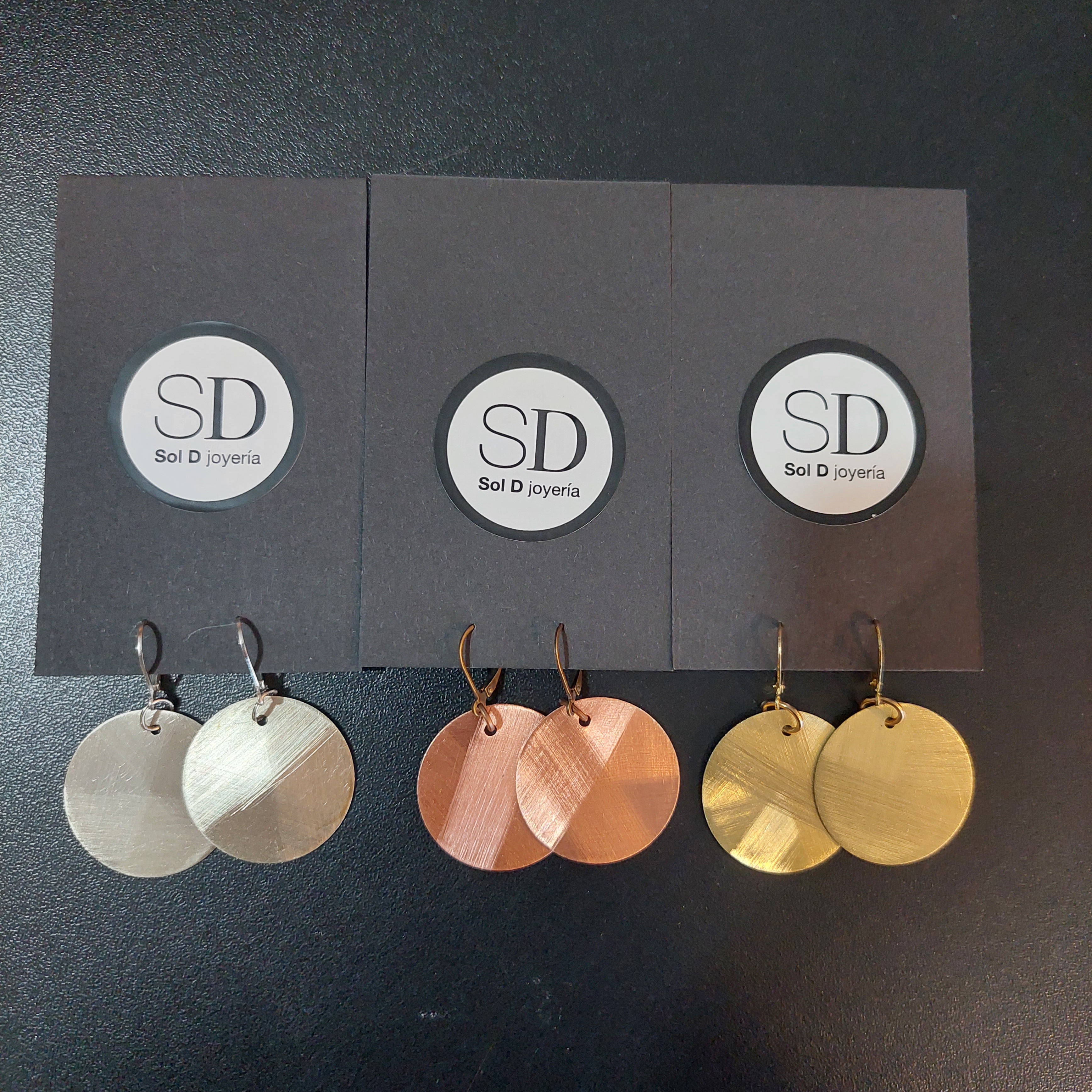 | Aros colgantes realizados en alpaca, bronce o cobre. |