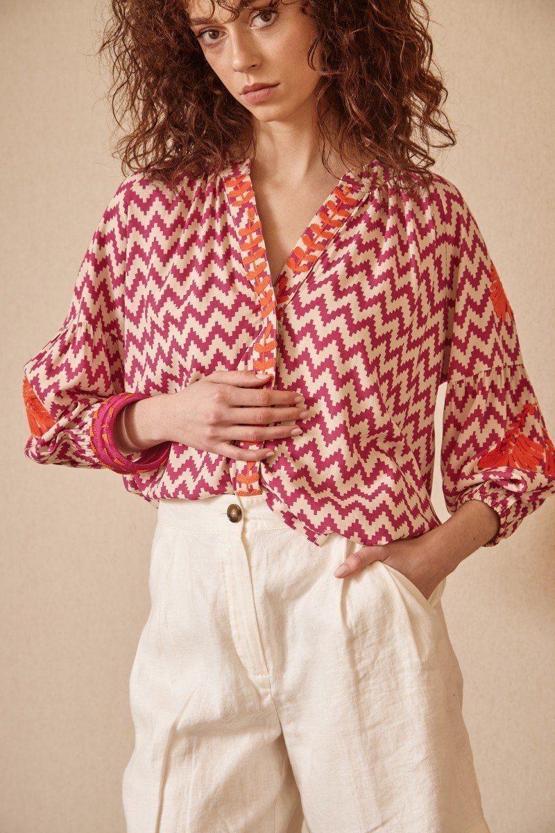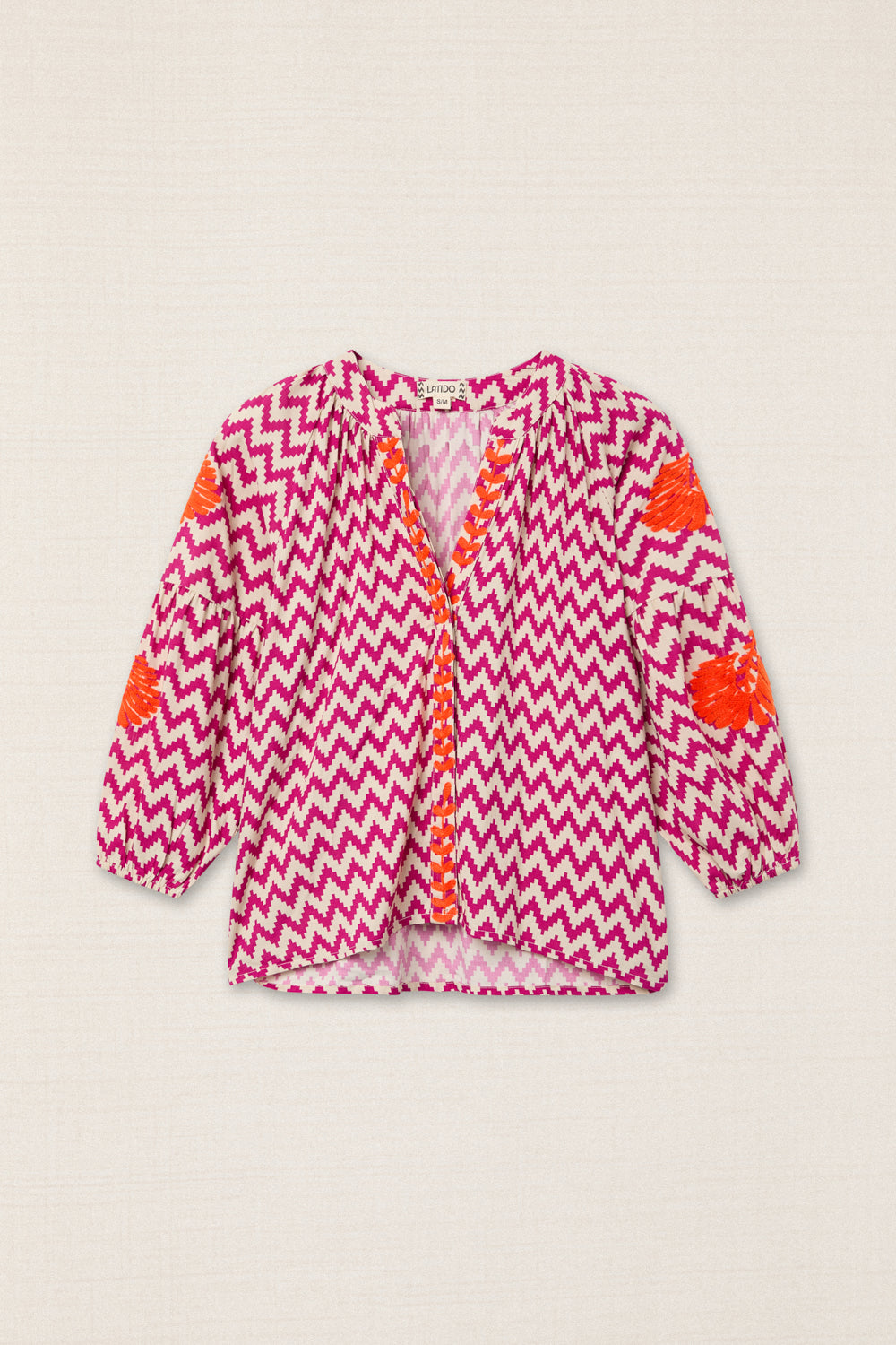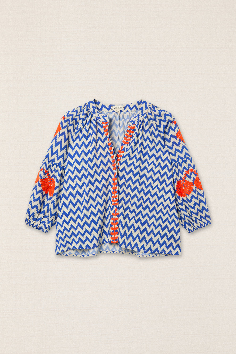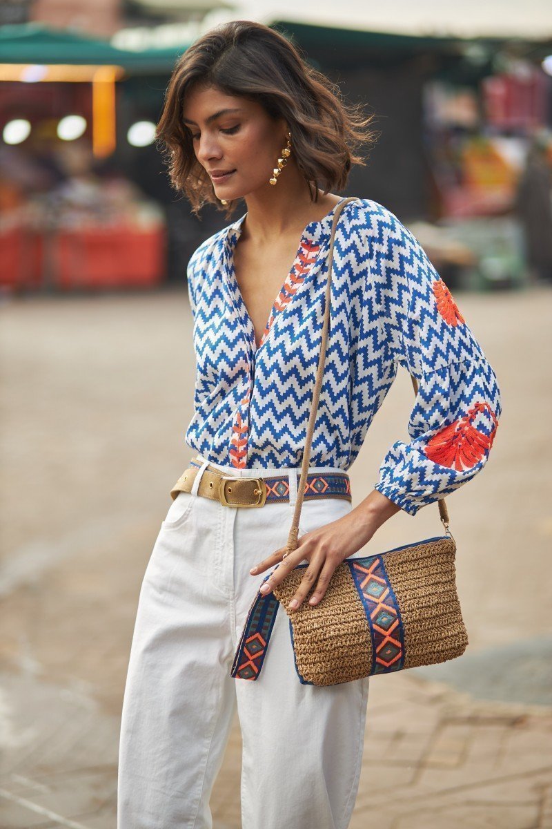 Aporta estilo a tu look con esta Blusa estampada con detalles bordados. Su diseño fresco y sofisticado la convierte en la prenda perfecta para destacar en cualquier ocasión.