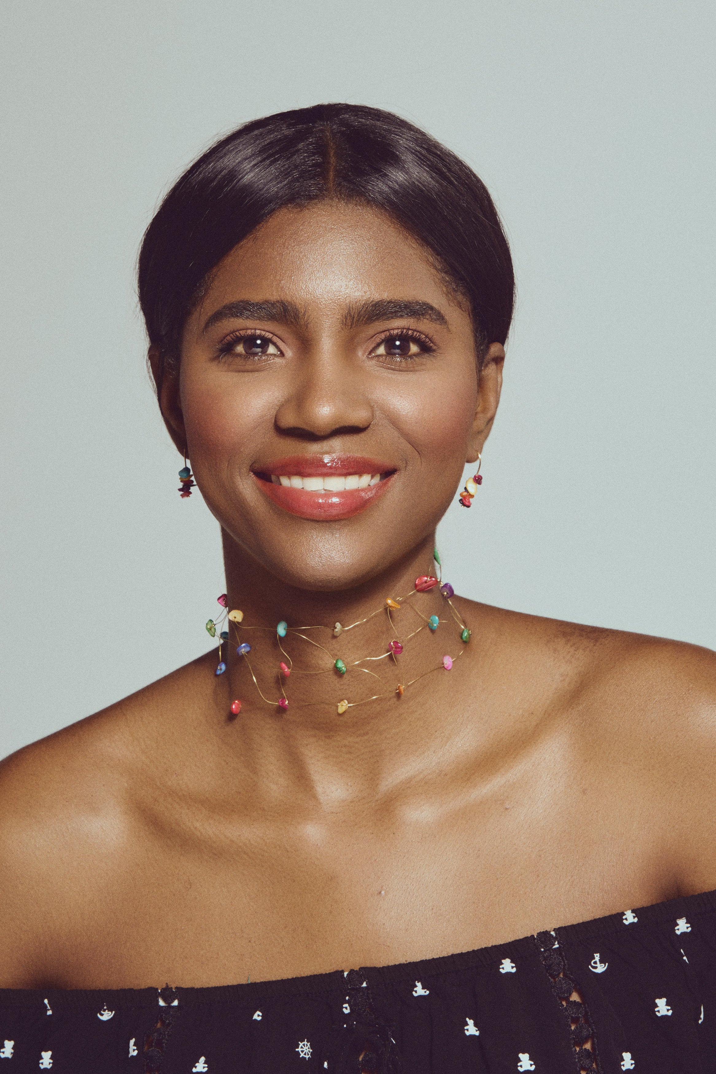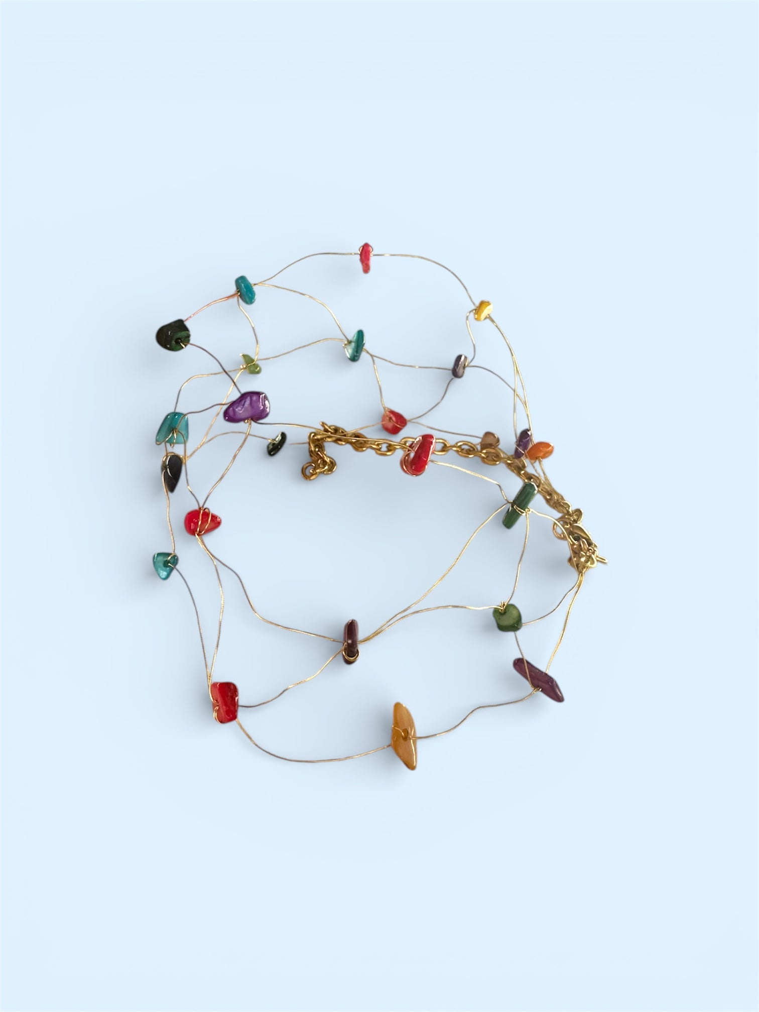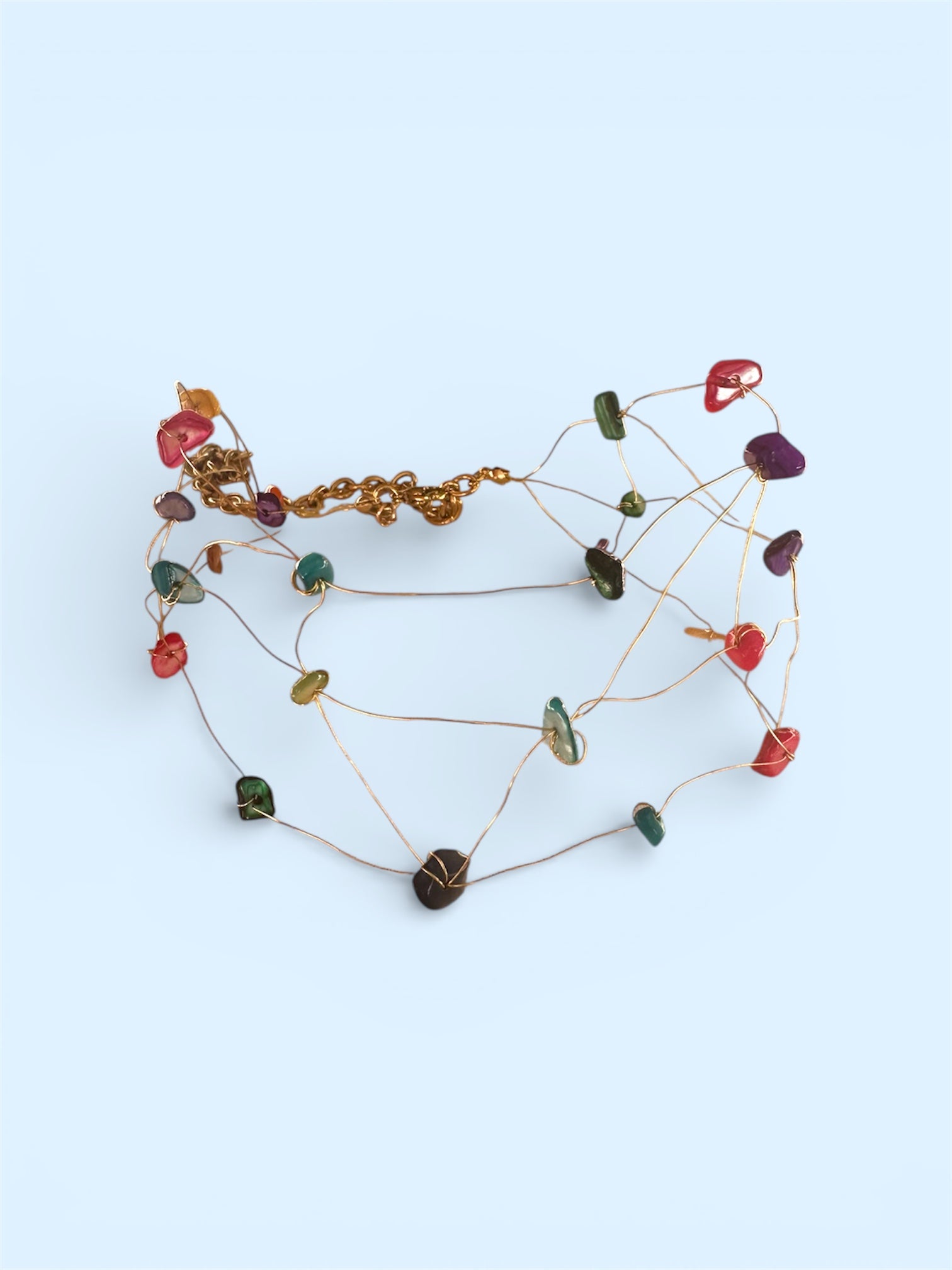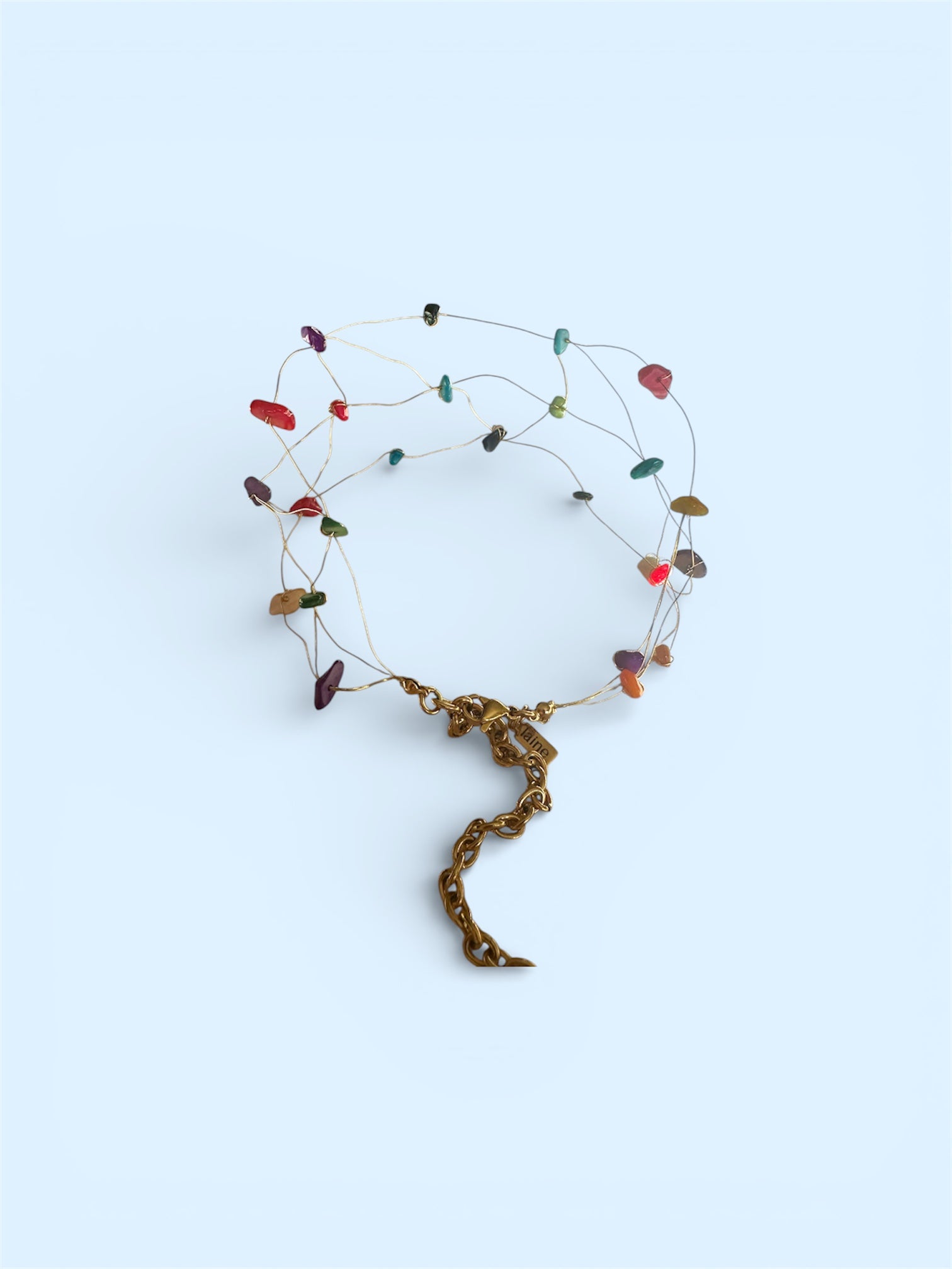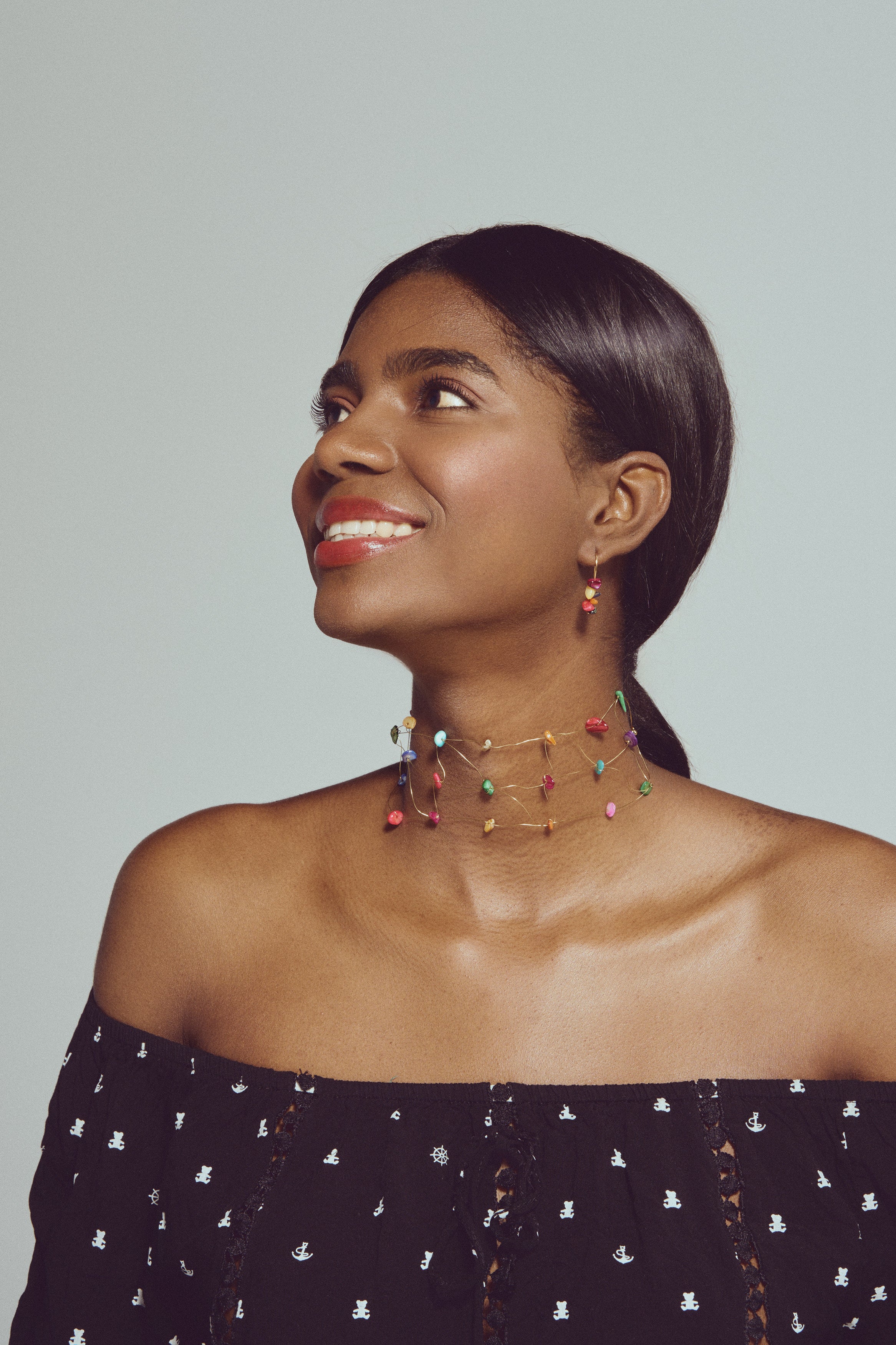 El Choker Laine Colores es una pieza moderna y versátil, perfecta para añadir un toque sutil de color a tu look. Su diseño en colores suaves y luminosos lo convierte en un accesorio ideal para cualquier ocasión.