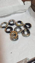 Aros con forma de donut en vidrio con pedacitos de papel plata
