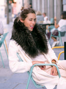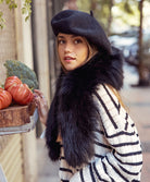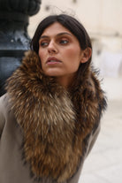 Estola de piel de mapache. Cierre interior con corchete peletero. Pinzas laterales para enganchar a la solapa de abrigos o chaquetas.