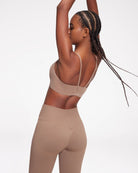 Este top sin costuras tiene un diseño elegante y funcional, con una delantera de cuello redondo suave y una espalda en forma de V, que le da un toque moderno. Su diseño reforzado asegura estabilidad y soporte en todo momento, permitiéndote moverte libremente. Ideal para quienes buscan confort y estilo durante el entrenamiento o en el día a día.