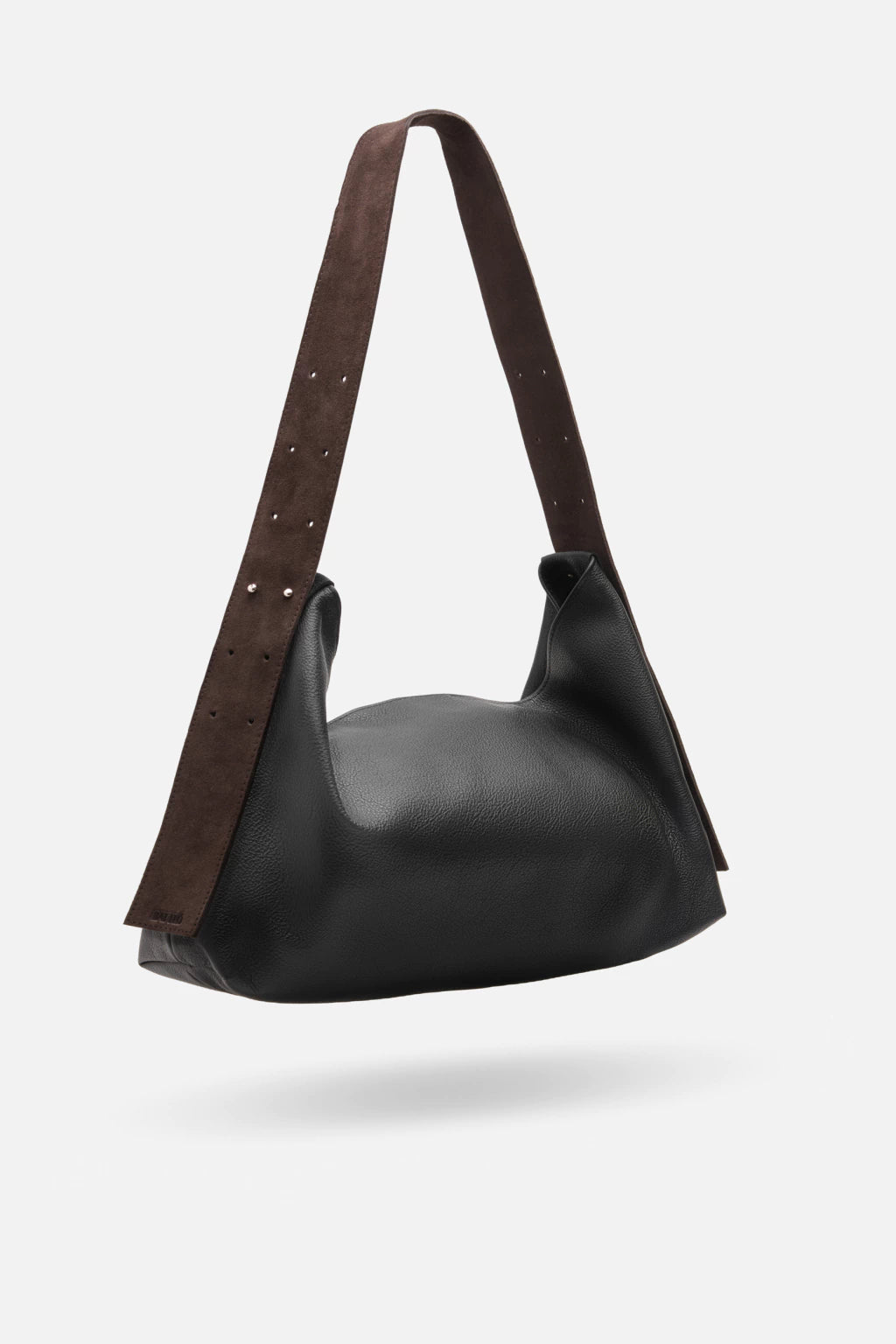 Bolso de tamaño grande. Es regulable y está hecho en piel. Cierre con broche imán.