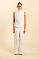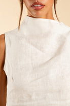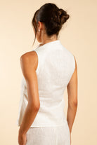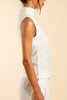 El top de lino ha sido diseñado para hacer match con todo tu armario y acompañarte este verano en todos tus planes desde las 8 AM hasta las 8 PM.